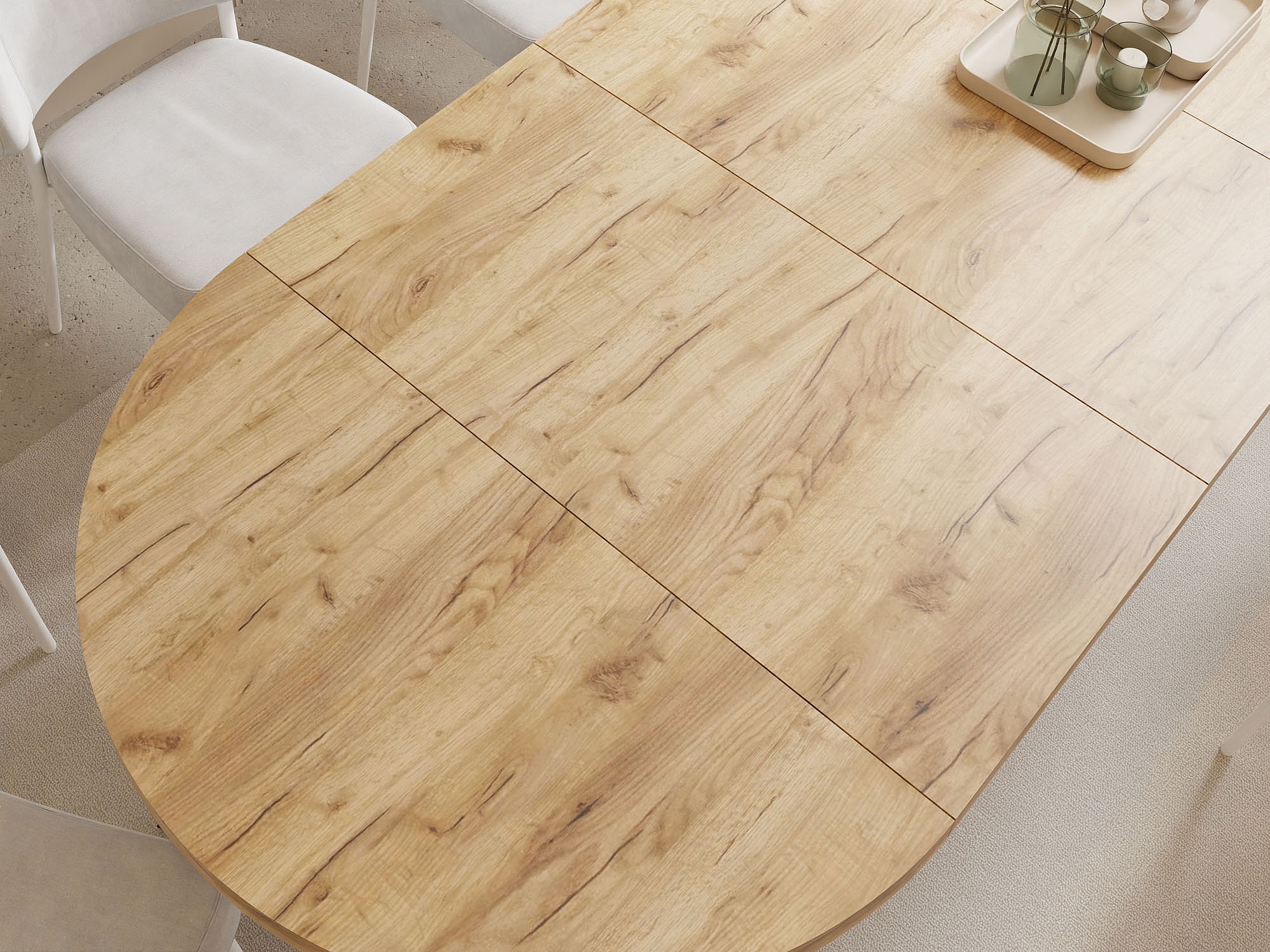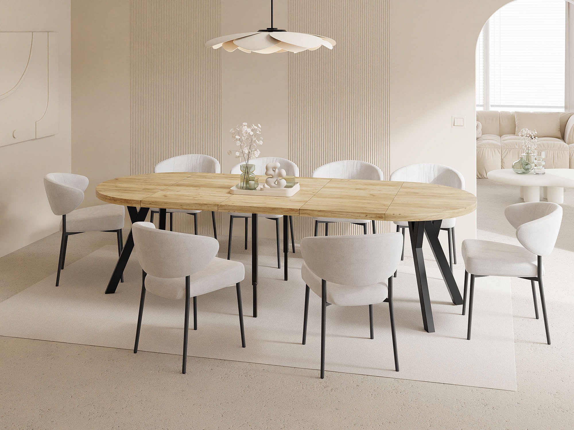 Esstisch Rund Groß XXL Ausziehbar im Loft-Stil – 100 bis 250 cm – Extra Lang Ausziehtisch mit Schwarzen Holzbeinen, Tisch für 5-14 Personen – Eiche Hell Braun