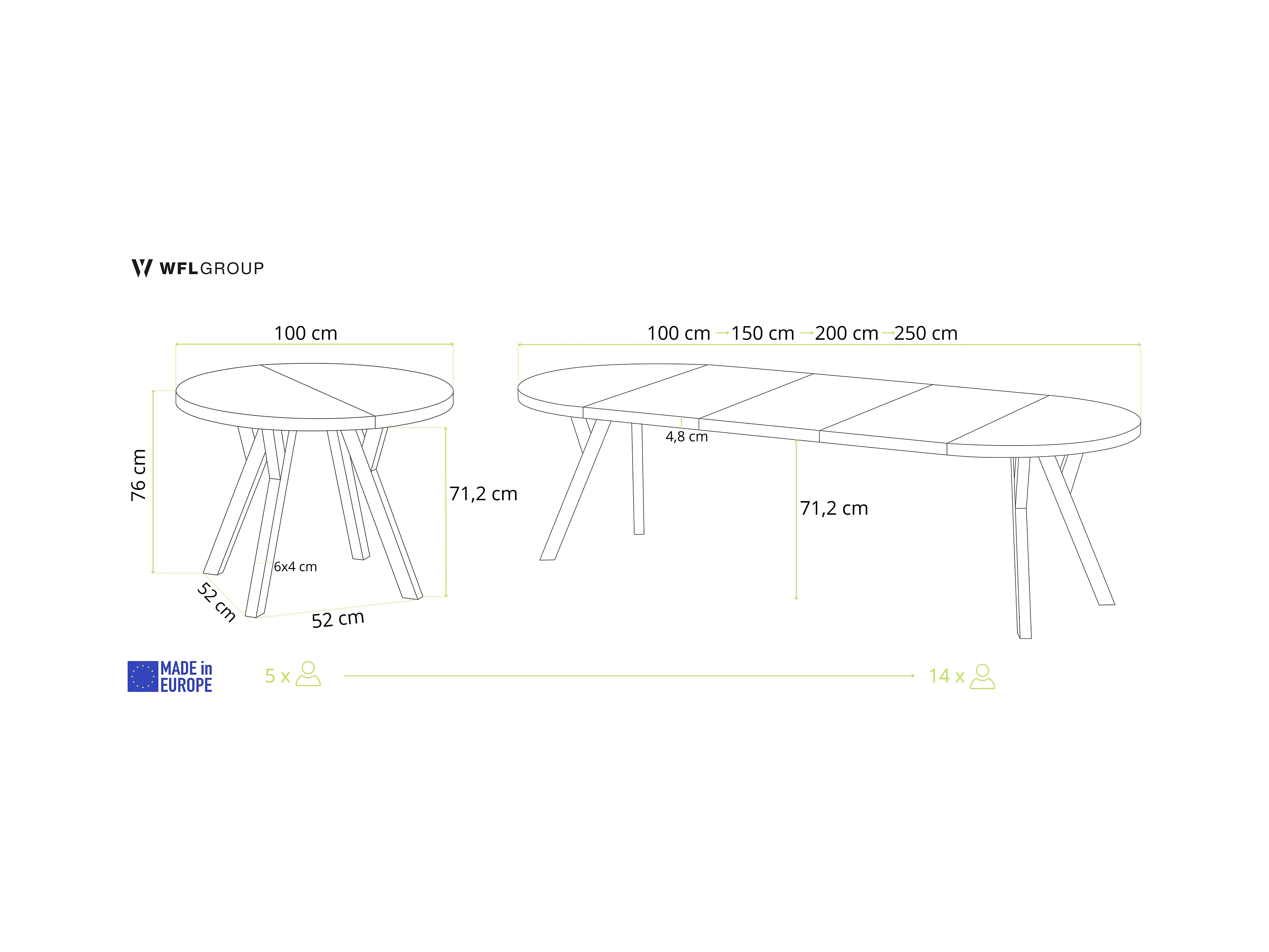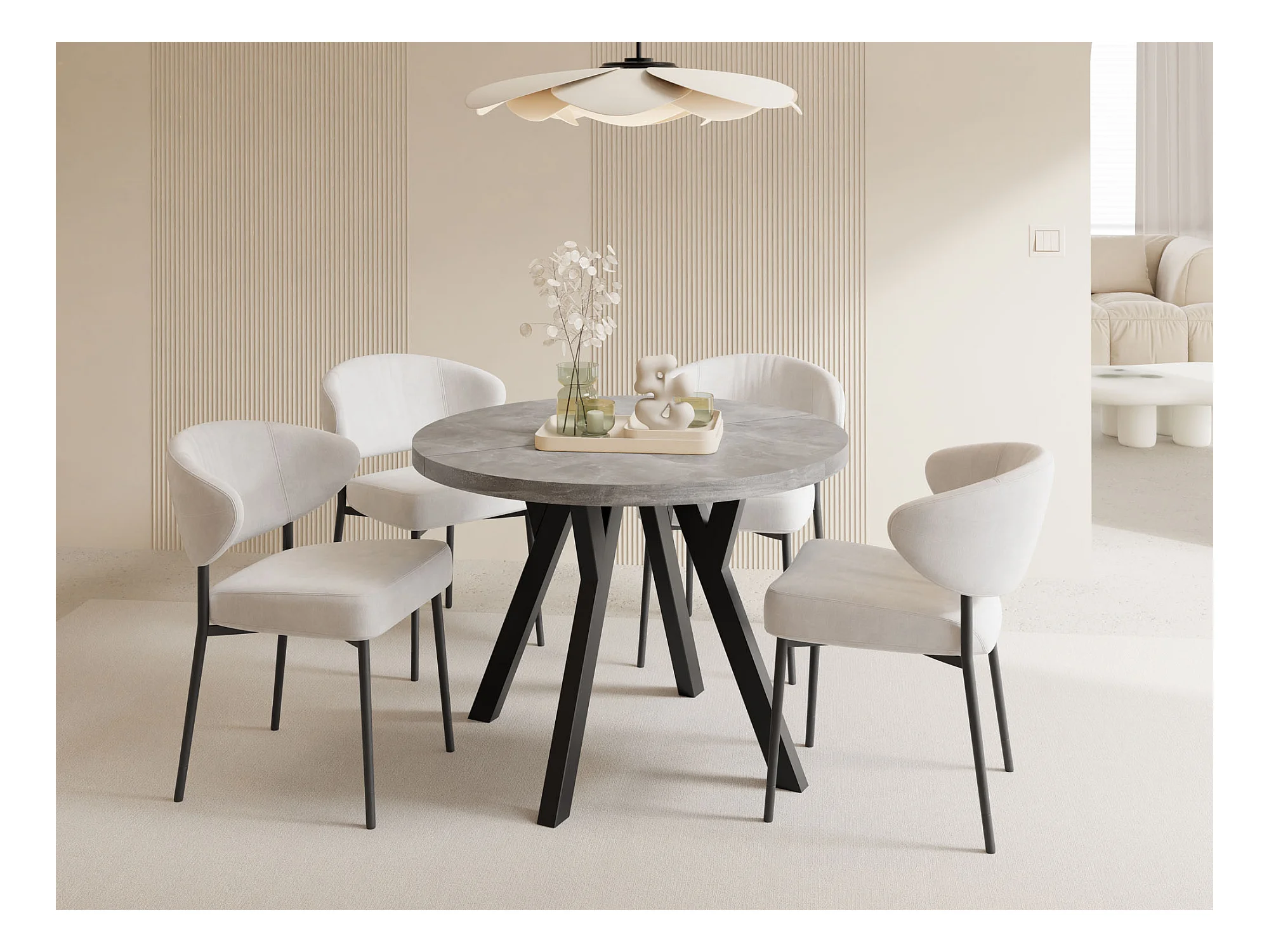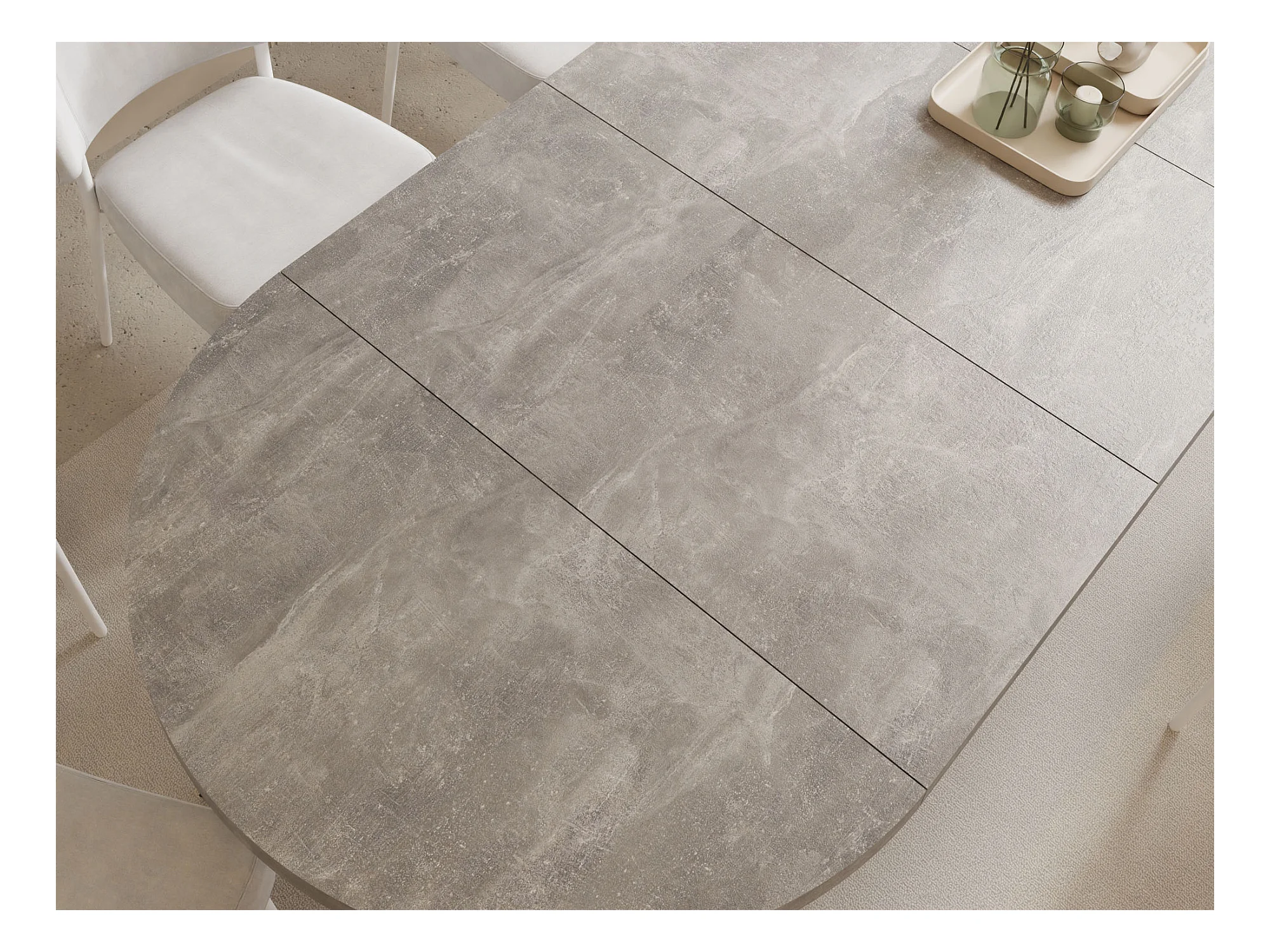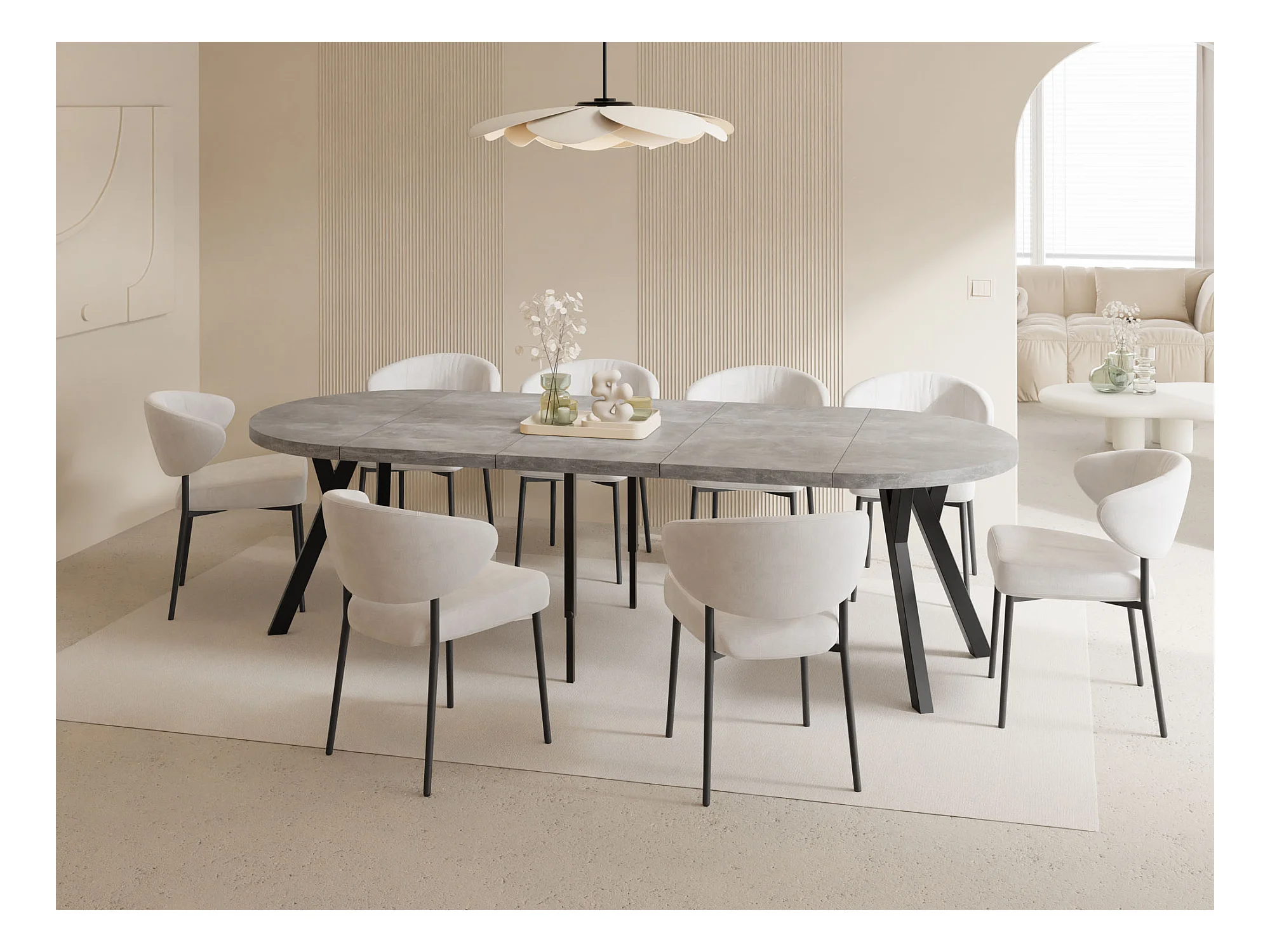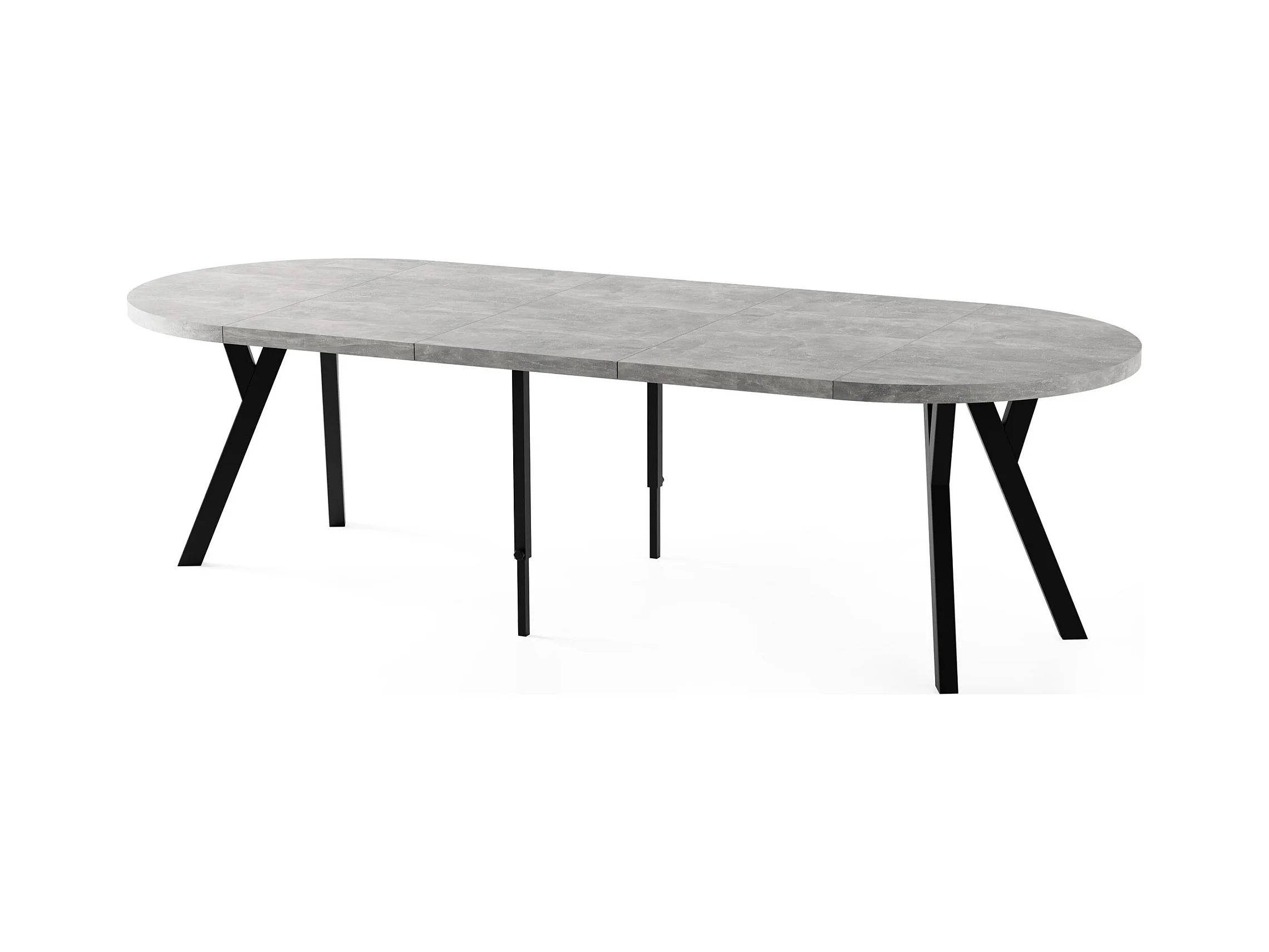 Esstisch Rund Groß XXL Ausziehbar im Loft-Stil – 100 bis 250 cm – Extra Lang Ausziehtisch mit Schwarzen Holzbeinen, Tisch für 5-14 Personen – Grauer Beton