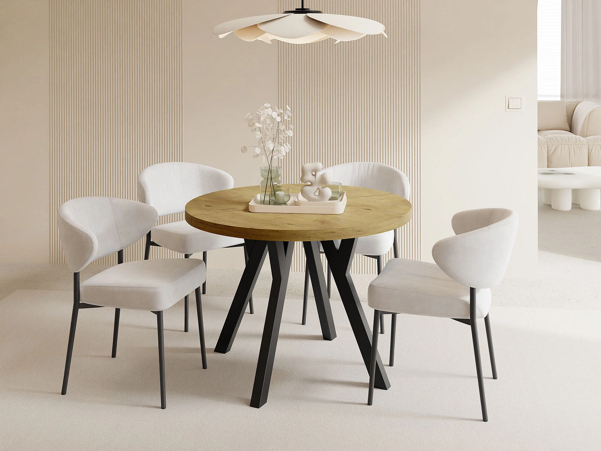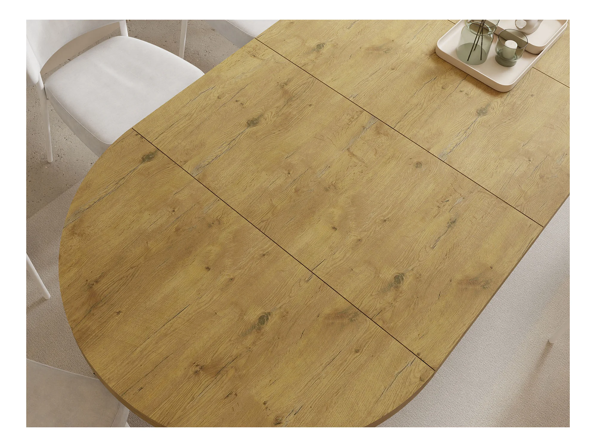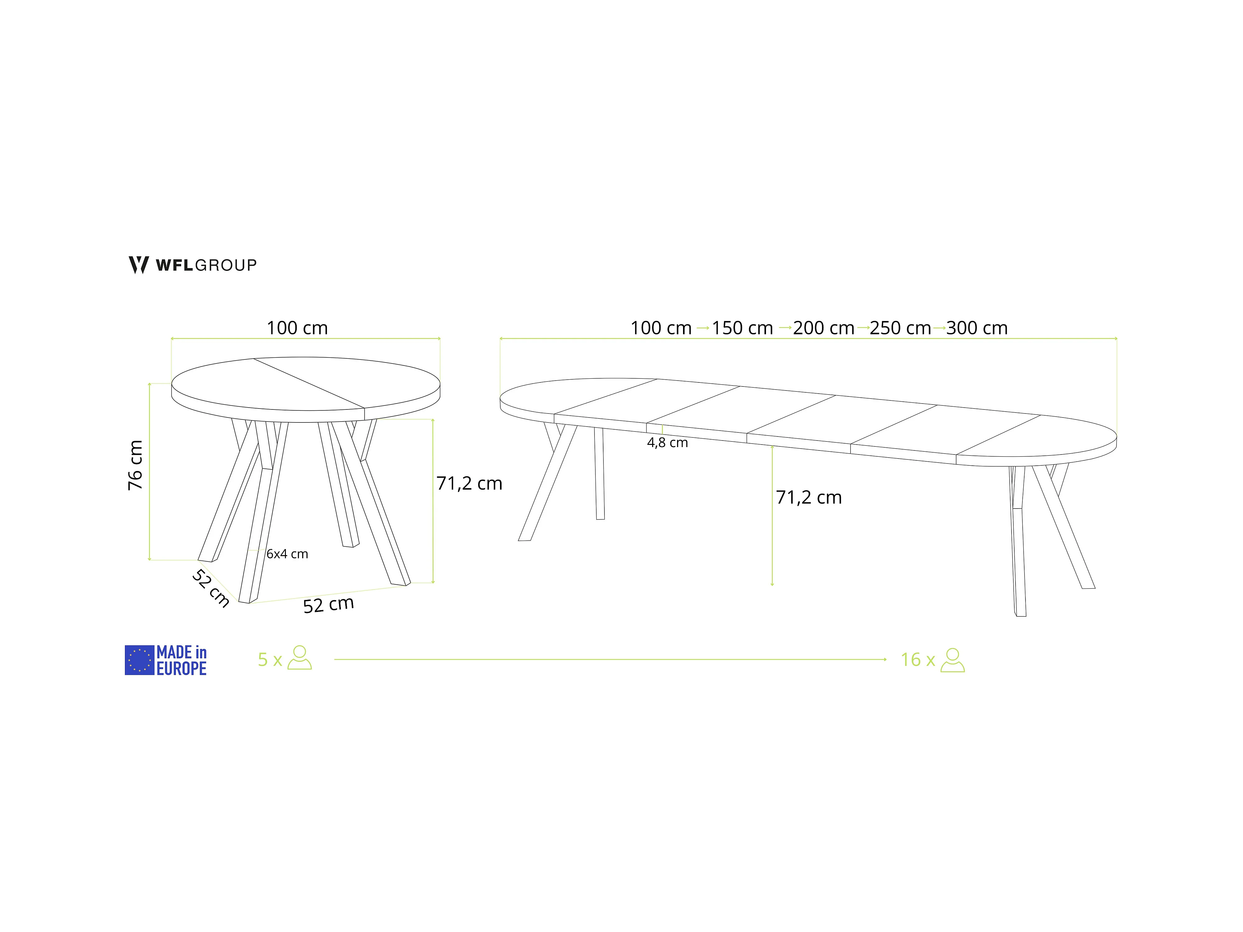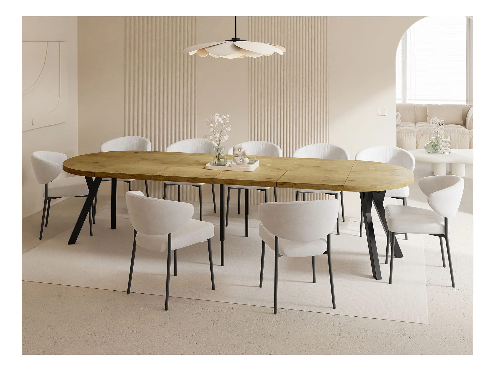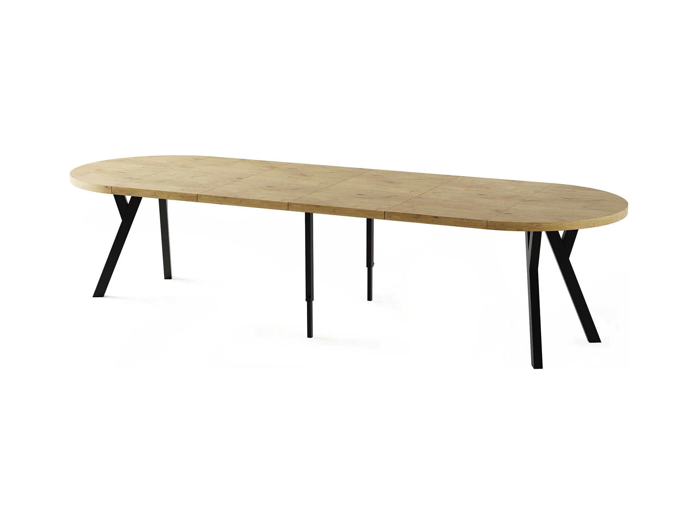 Esstisch Rund Groß XXL Ausziehbar im Loft-Stil – 100 bis 300 cm – Extra Lang Ausziehtisch mit Schwarzen Holzbeinen, Tisch für 5-16 Personen – Eiche Hell Braun