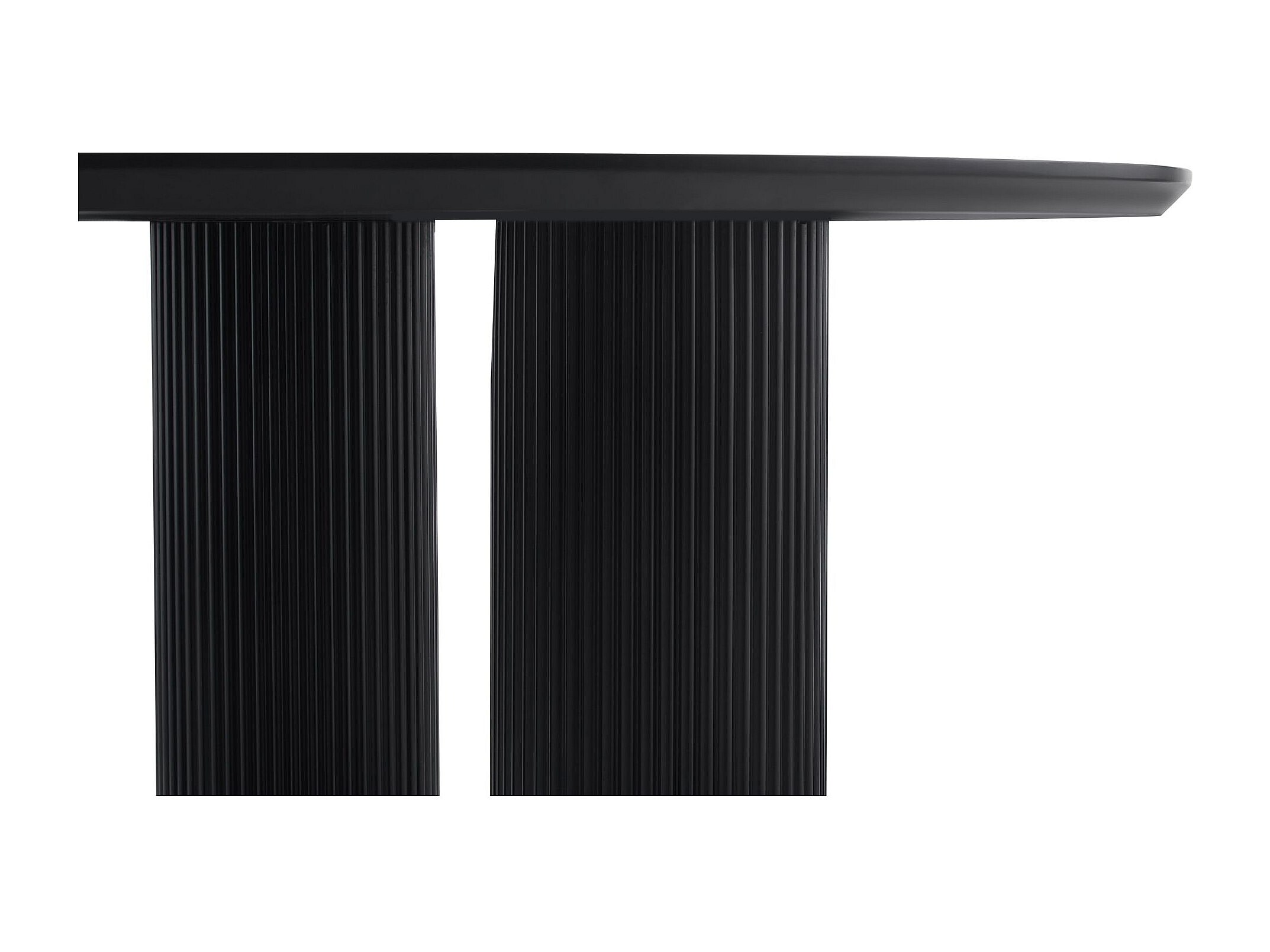 Ein besonderes Highlight bilden die drei zylindrischen Tischbeine mit feiner Lamellenstruktur. Sie erinnern an klassische Säulen im Art-déco-Stil und verleihen dem Tisch eine architektonische Eleganz, die ihn weit über seine reine Funktion hinaushebt.