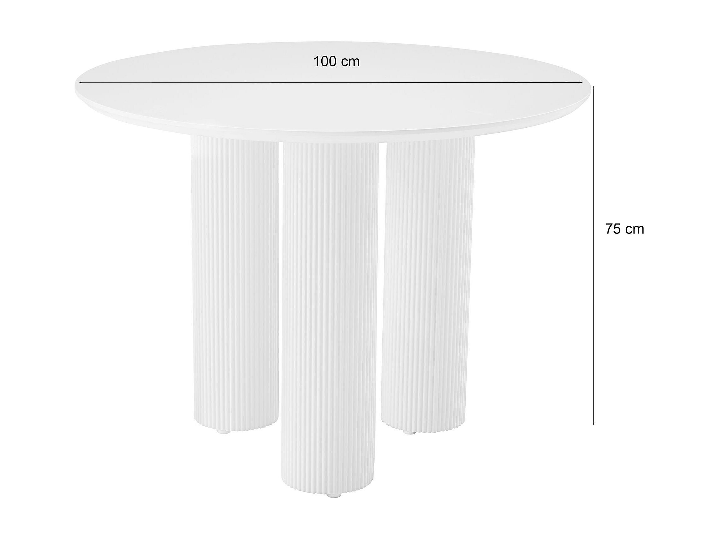 Die runde Tischplatte mit einem Durchmesser von 100 cm besteht aus robuster, 25 mm starker MDF-Platte und ist farblich perfekt auf das Untergestell abgestimmt. So entsteht ein harmonisches Gesamtbild, das sich nahtlos in verschiedene Wohnstile einfügt – von modern-minimalistisch bis hin zu elegant und ausdrucksstark.