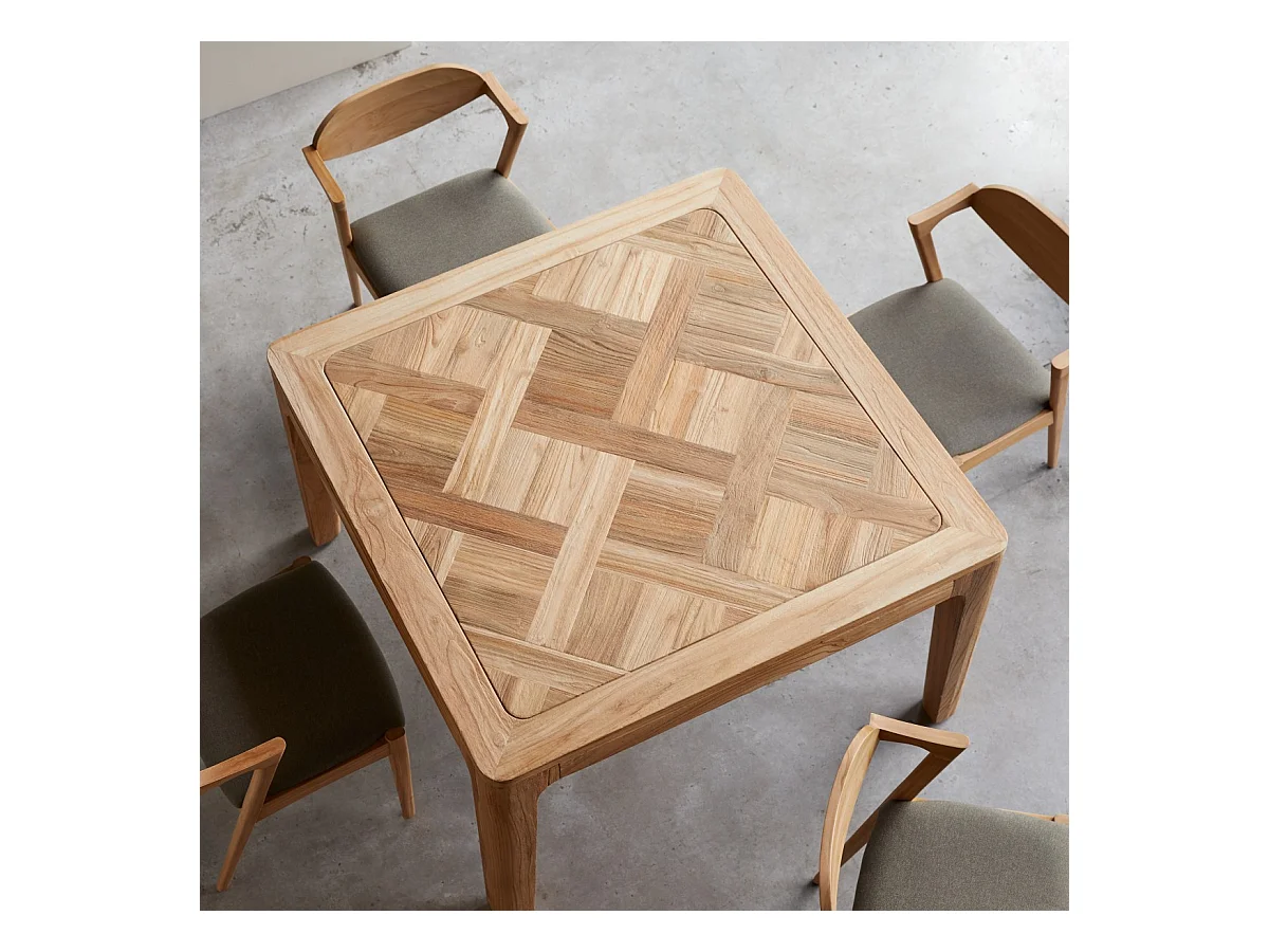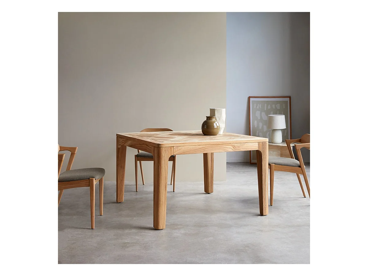 Esstisch Ruth aus massivem, recyceltem Teakholz 120x120
