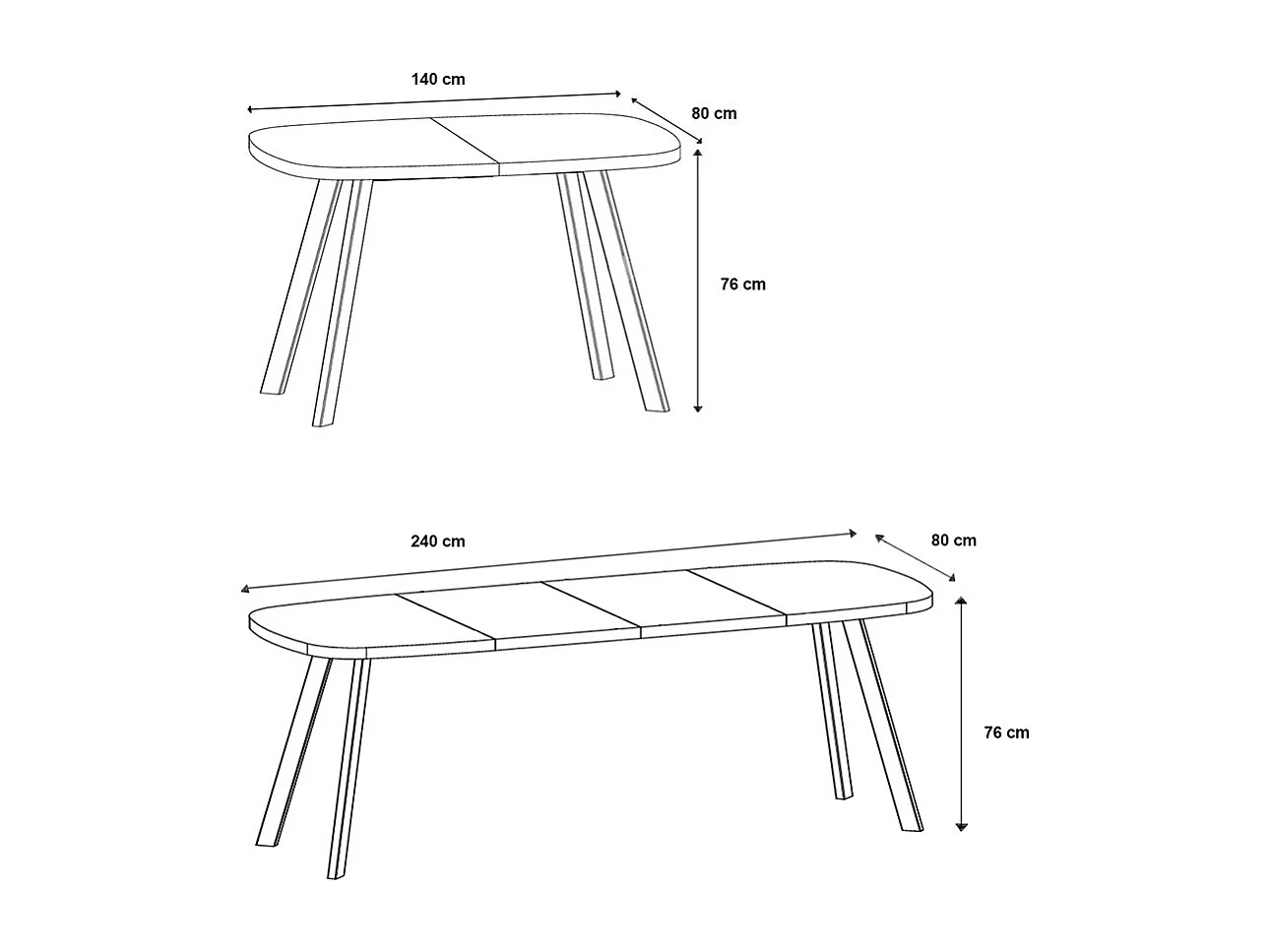 ESSTISCH Solo 140 Gold Craft Eiche / Schwarz 140/240 / 80 / 76cm