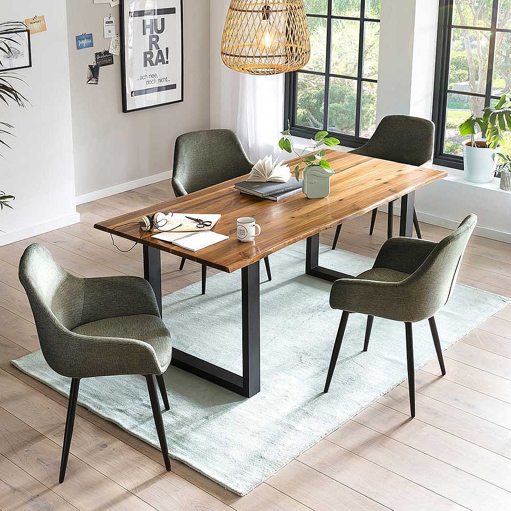 Esstisch St�hle in Graugr�n und Schwarz Stoffbezug (2er Set)
