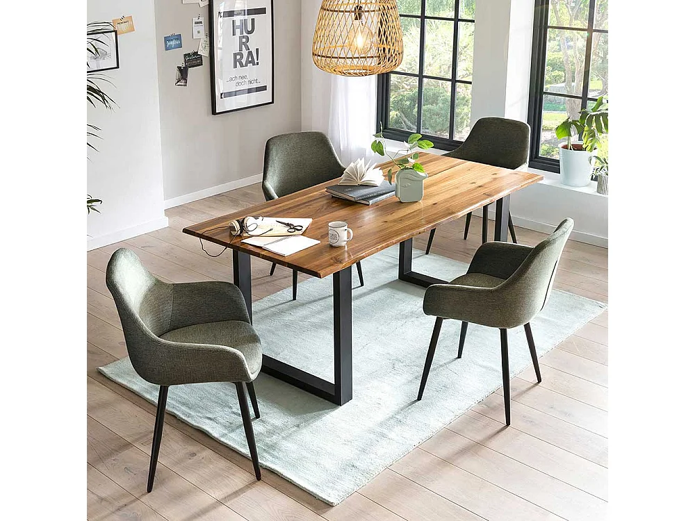 Esstisch Stühle in Graugrün und Schwarz Stoffbezug (2er Set)