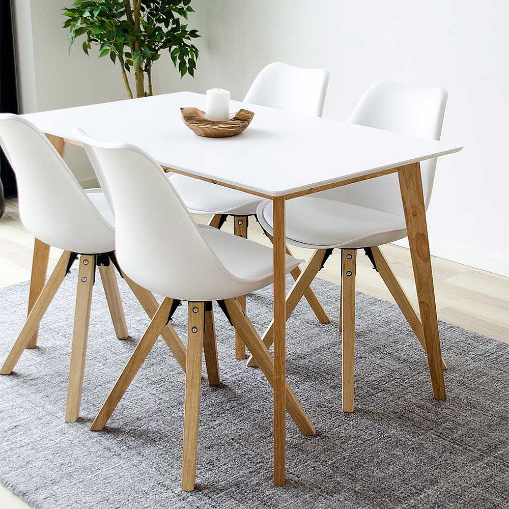 Esstisch St�hle in Wei� Massivholzgestell in Naturfarben (2er Set)