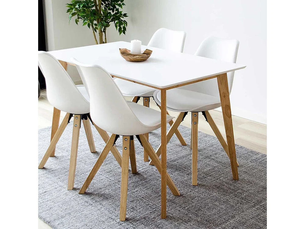 Esstisch Stühle in Weiß Massivholzgestell in Naturfarben (2er Set)