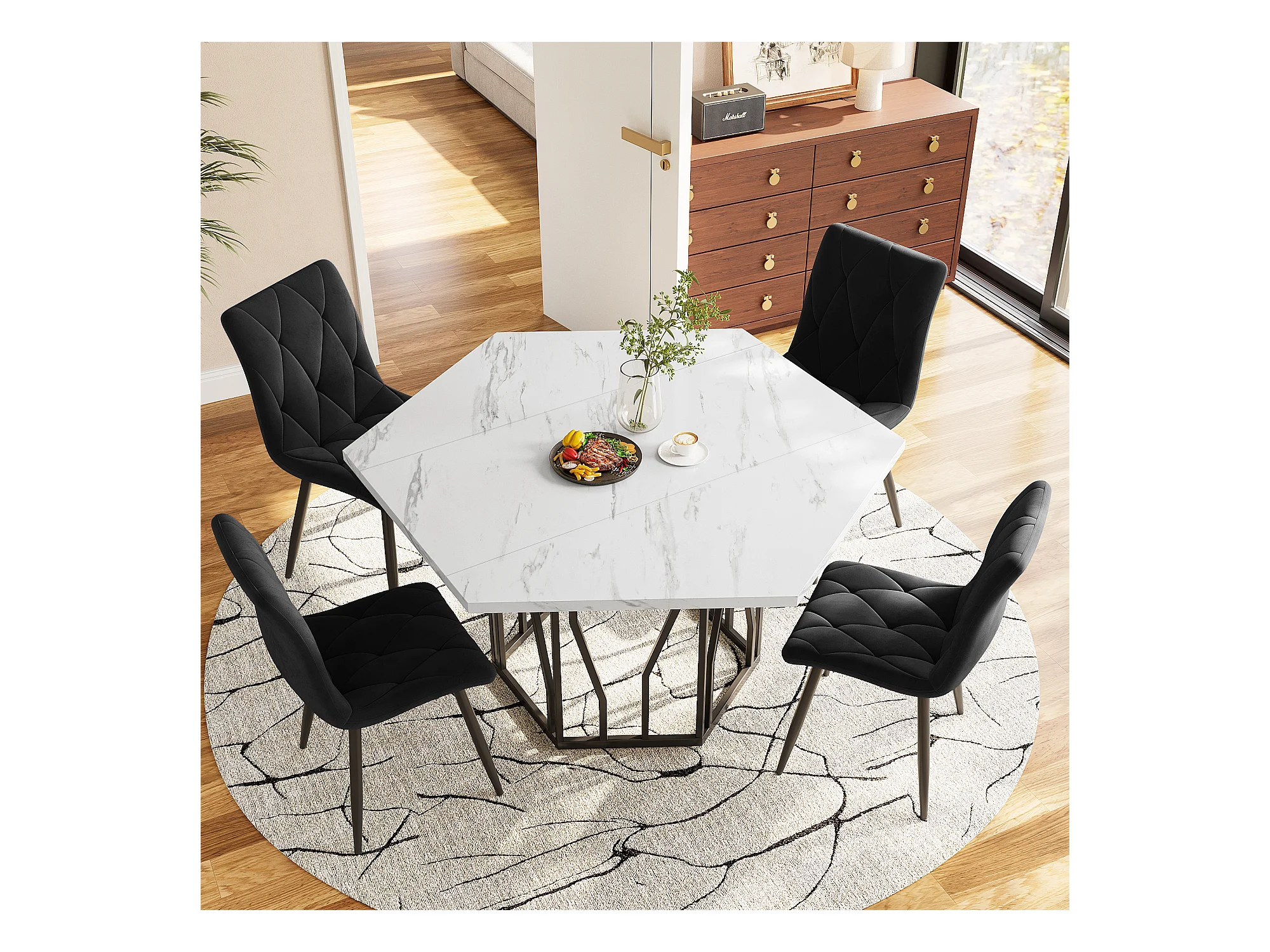 Esstisch- und Stuhlset - 115,5 x 100 x 75 cm - 1 sechseckiger Tisch + 4 Stühle - MDF + Stahl - schwarz