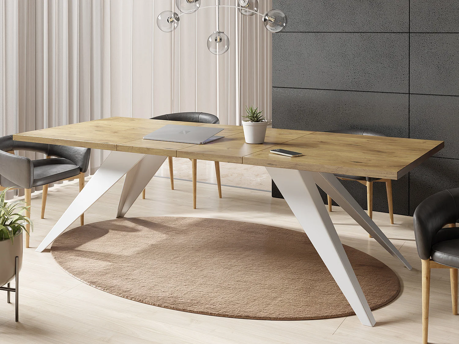 Esstisch Venus im Modern Still, Rechteckig Tisch - Ausziehbar von 140 cm bis 240 cm, Pulverbeschichtete Weiße Metallbeine - 140 x 80 cm - Lancelot Eiche