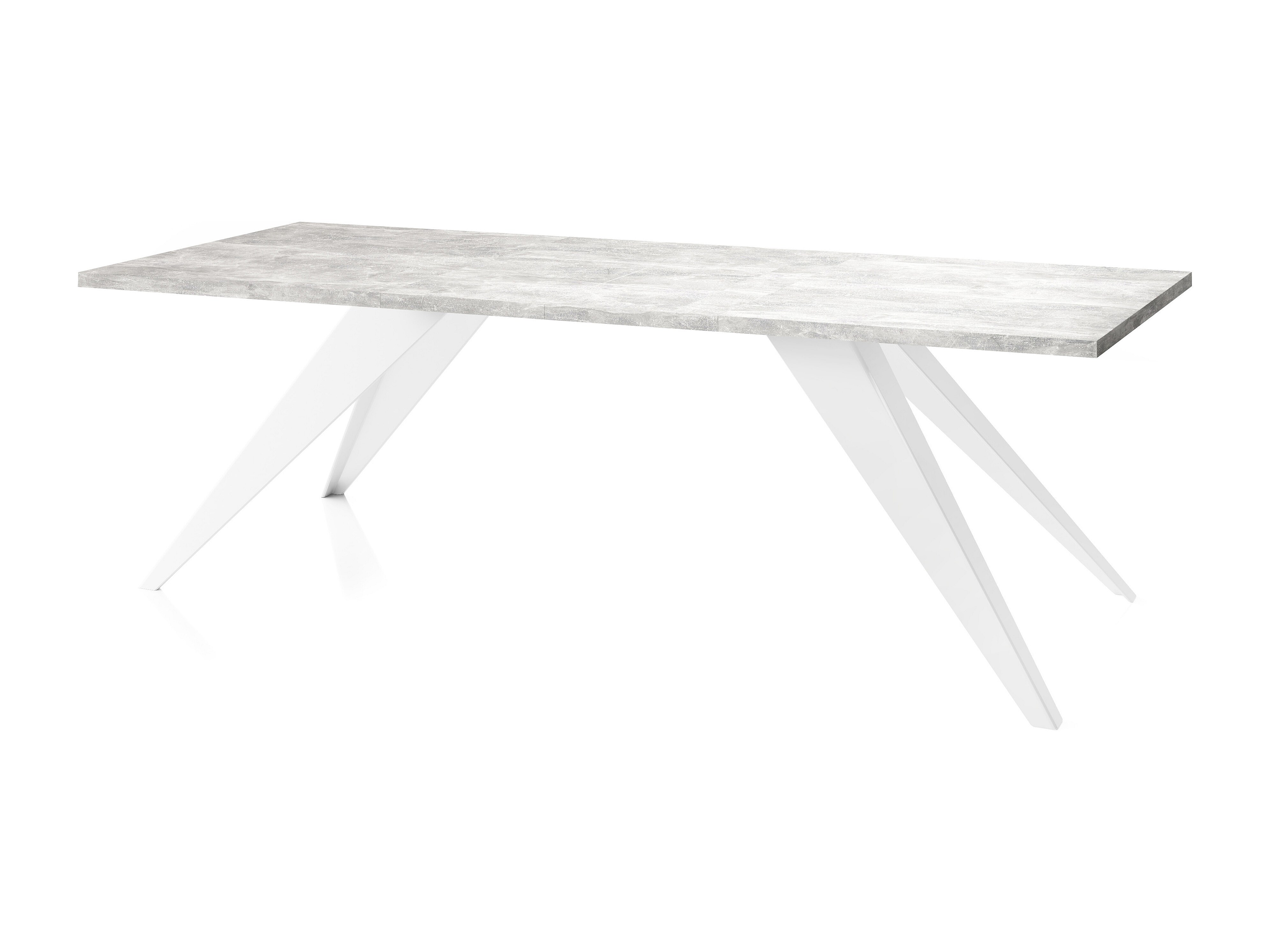 Esstisch Venus im Modern Still, Rechteckig Tisch - Ausziehbar von 160 cm bis 260 cm, Pulverbeschichtete Weiße Metallbeine - 160 x 90 cm - Beton Grau