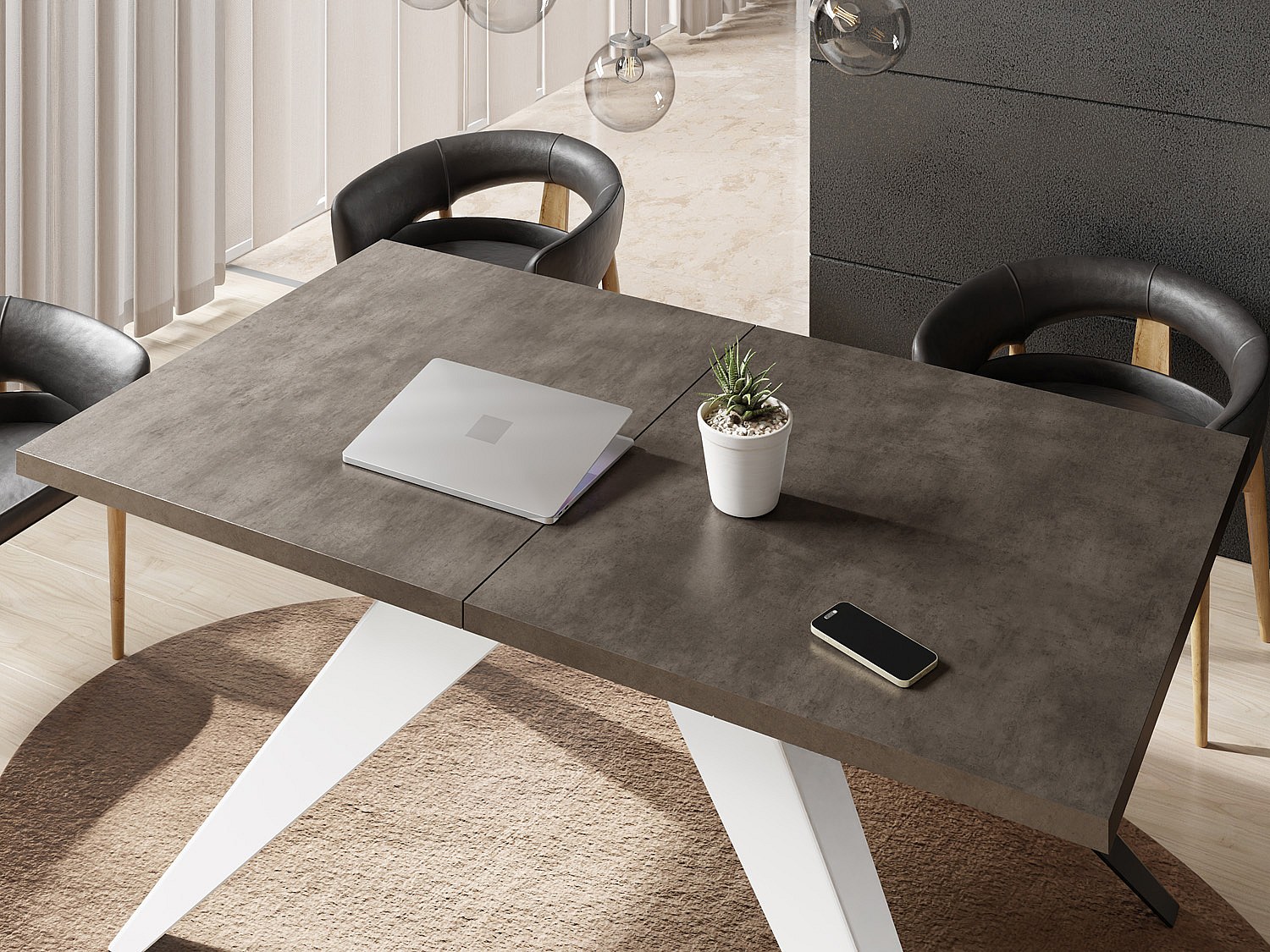 Esstisch Venus im Modern Still, Rechteckig Tisch - Ausziehbar von 160 cm bis 260 cm, Pulverbeschichtete Weiße Metallbeine - 160 x 90 cm - Chicago Beton Grau