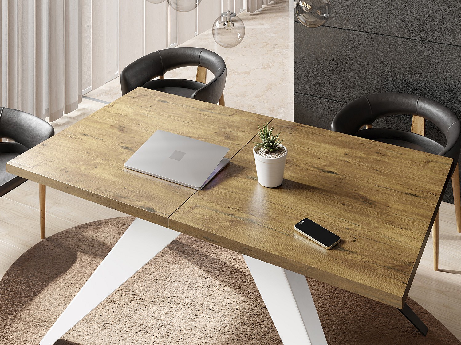 Esstisch Venus im Modern Still, Rechteckig Tisch - Ausziehbar von 160 cm bis 260 cm, Pulverbeschichtete Weiße Metallbeine - 160 x 90 cm - Lancelot Eiche