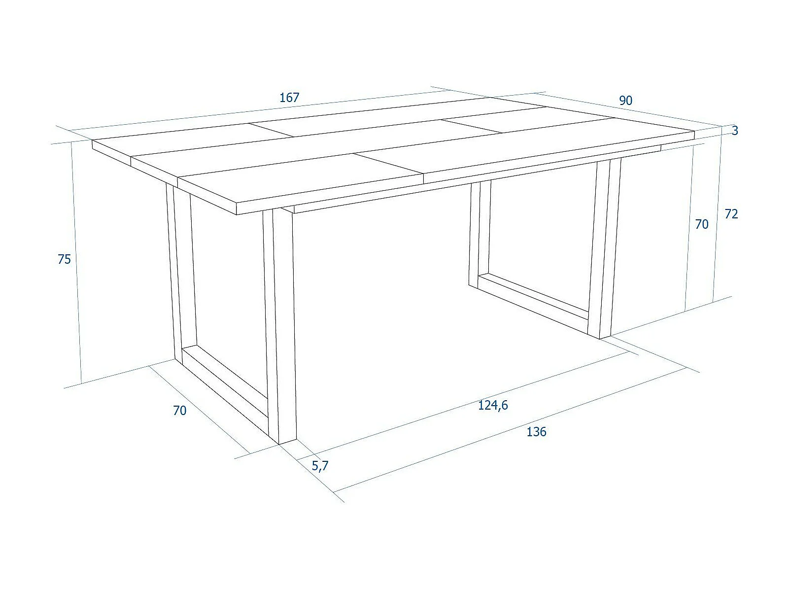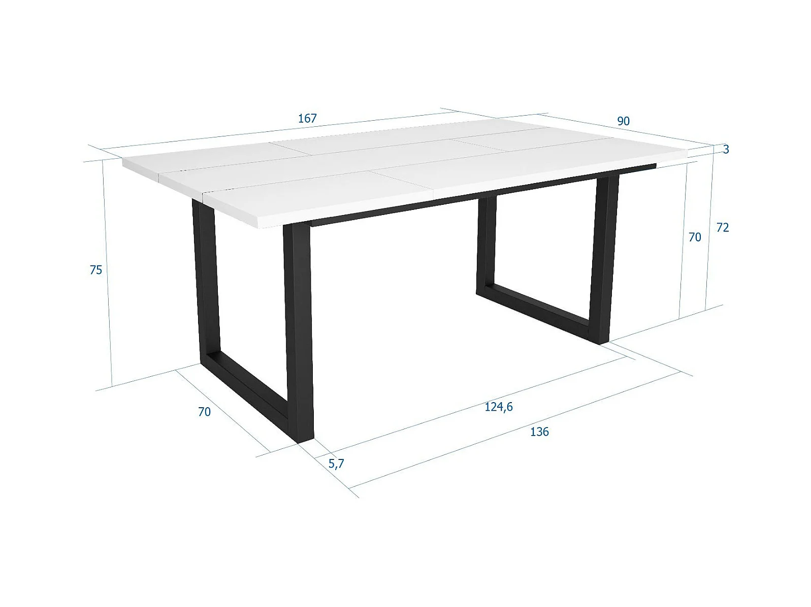 Esstische, 8 personen, 167x90x75cm, Robust und stabil dank seiner Struktur und solide Beine, Weiß, Industrielles Stil