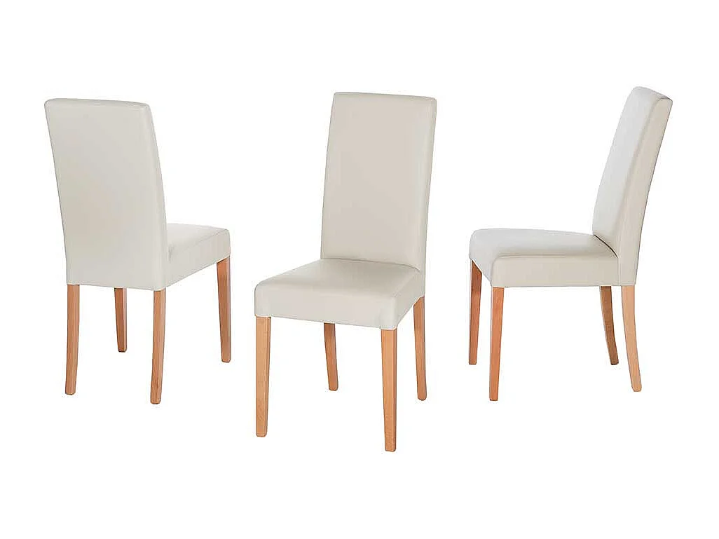 Esstischstühle in Cremefarben Kunstleder Holzbeinen aus Buche (2er Set)