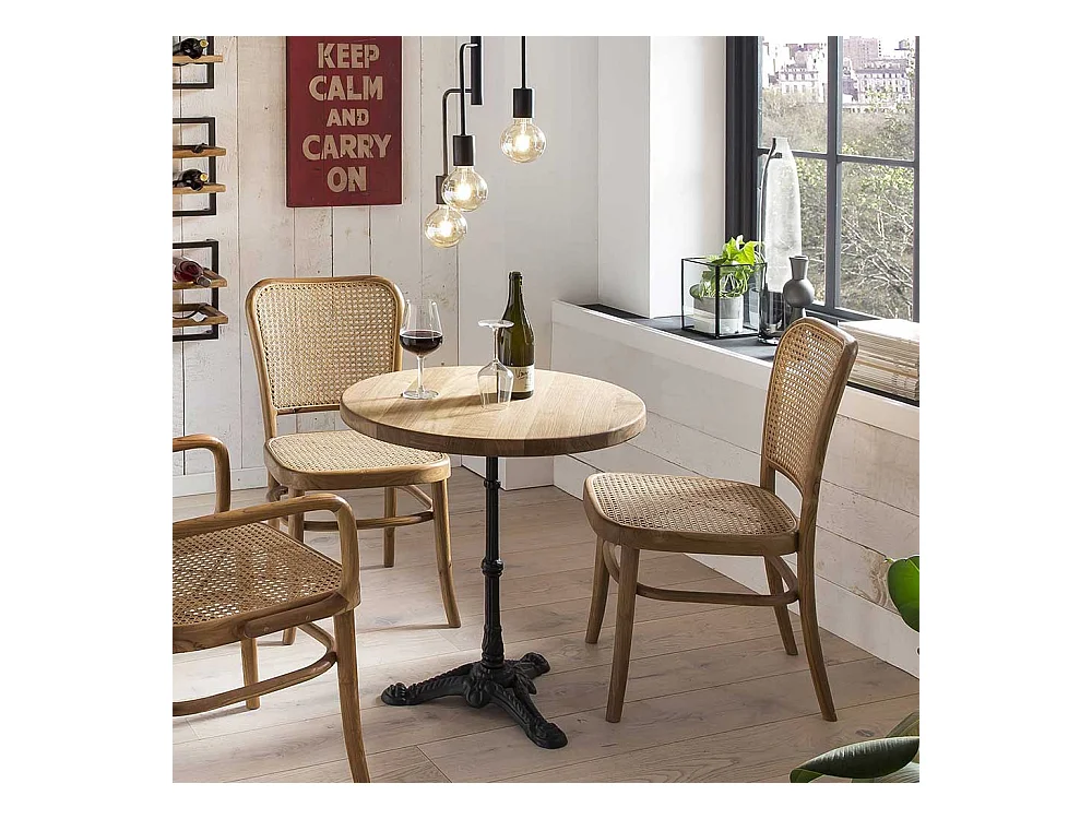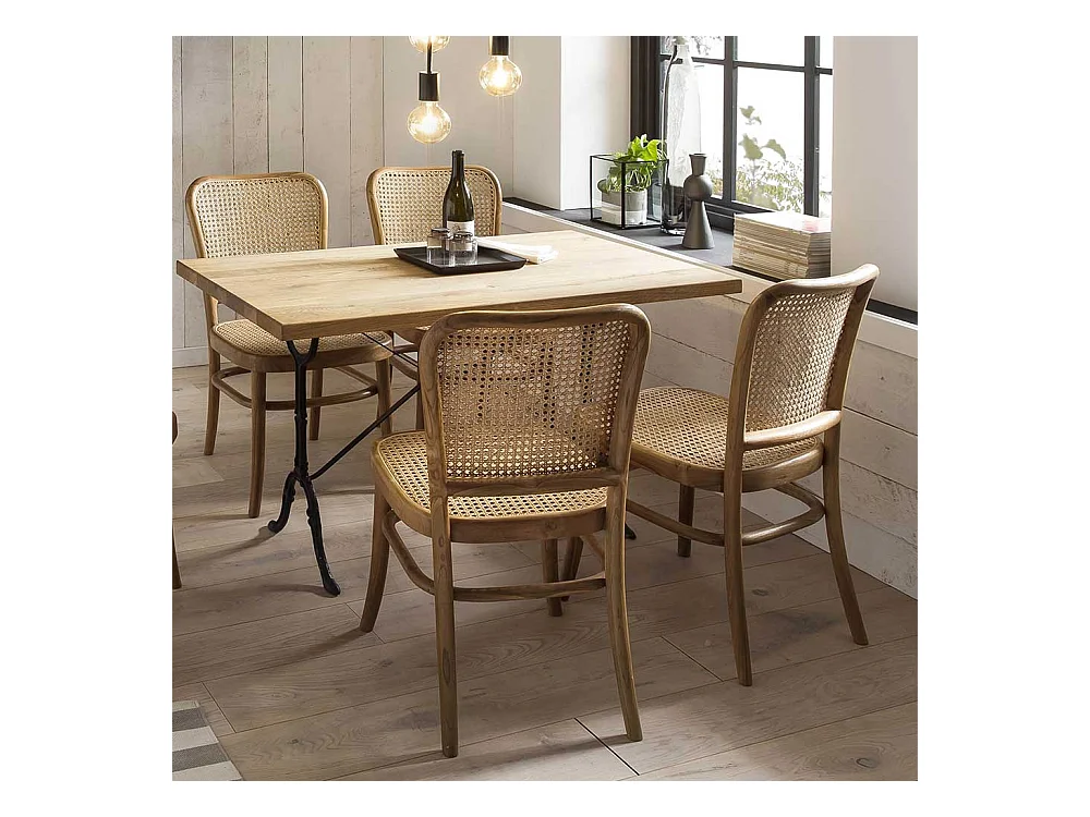 Esstischstuhl aus Teak Massivholz und Rattan Retrostil