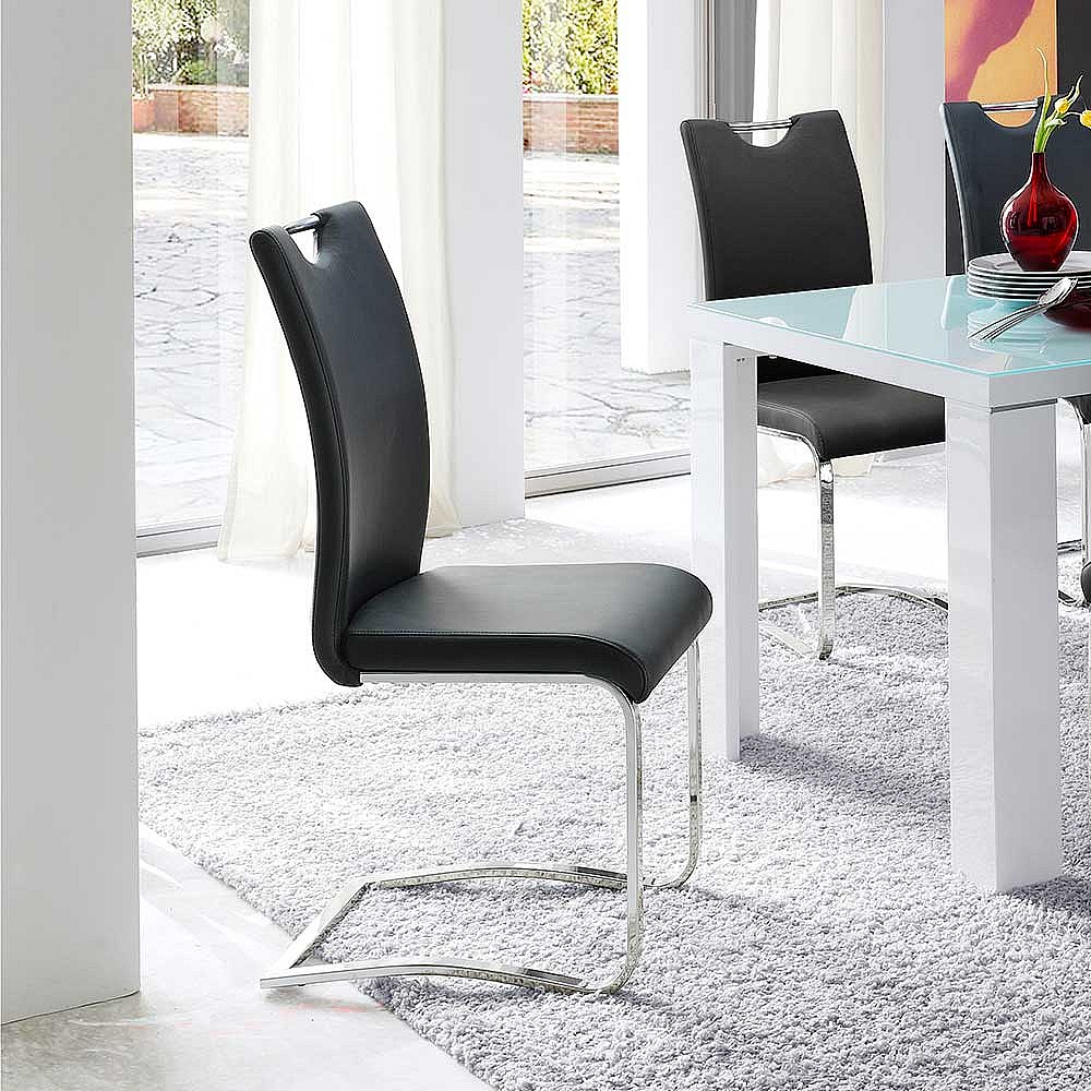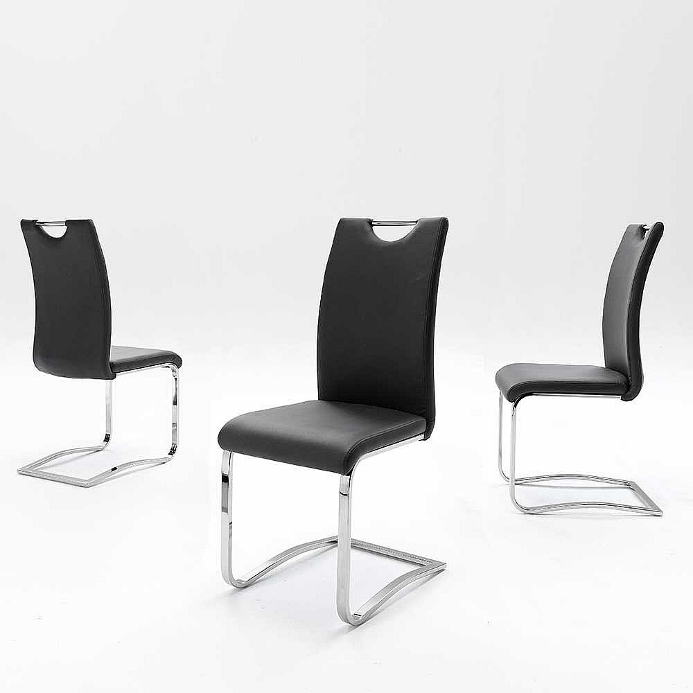 Esstischstuhl in Schwarz Stahl verchromt (4er Set)