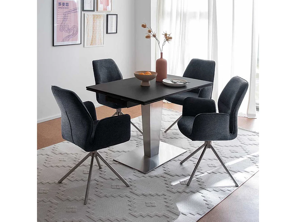 Esstischstuhl Set Anthrazit aus Chenillegewebe Edelstahl (2er Set)