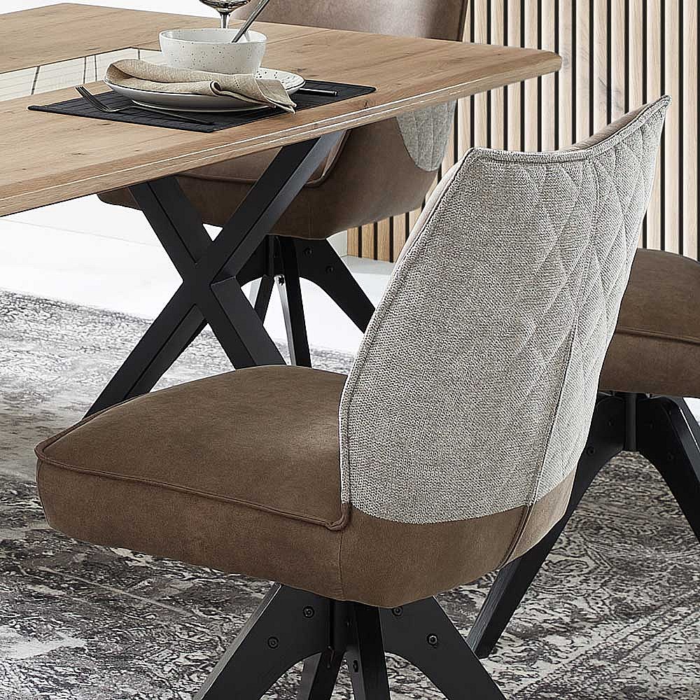 Esstischstuhl Set in Braun-Grau Microfaser und Webstoff (2er Set)