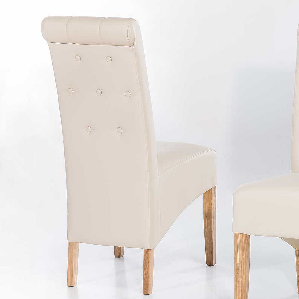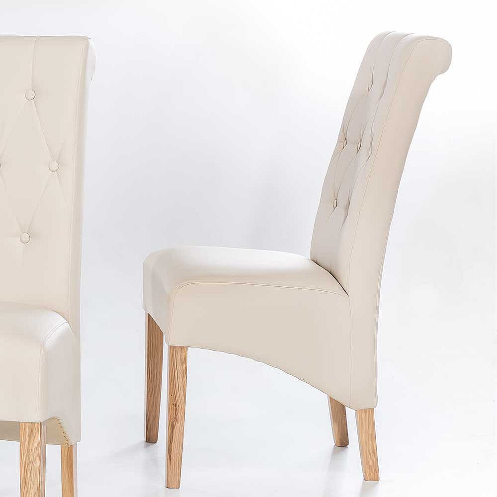 Esstischstuhl Set in Creme Wei� Kunstleder Eiche Massivholz (2er Set)