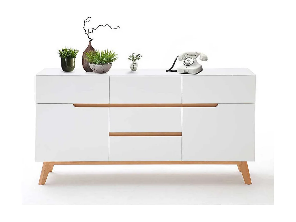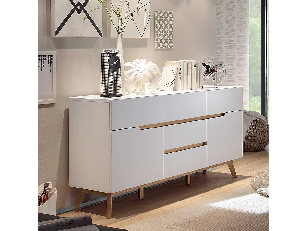 Esszimmer Anrichte in Weiß Asteiche Massivholz