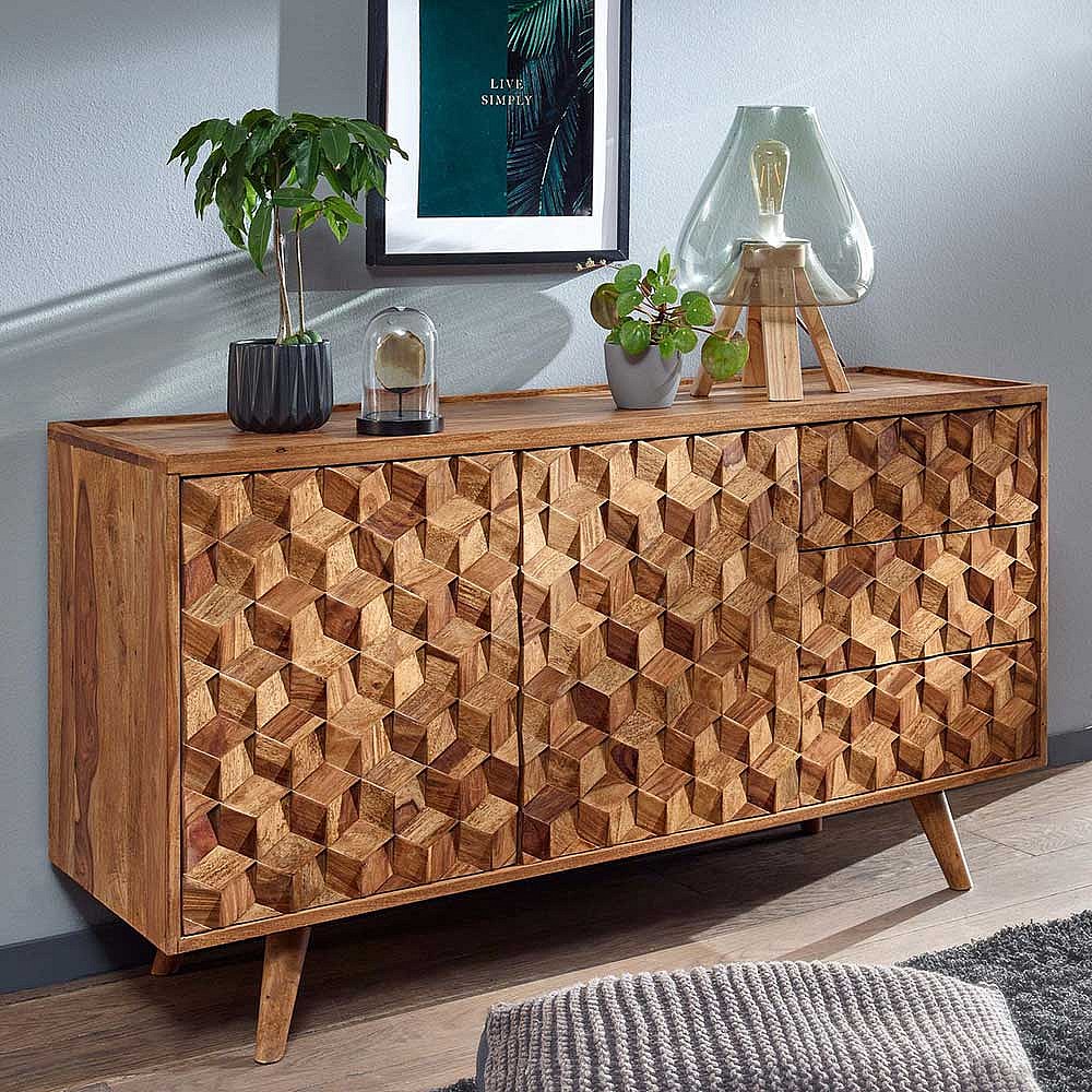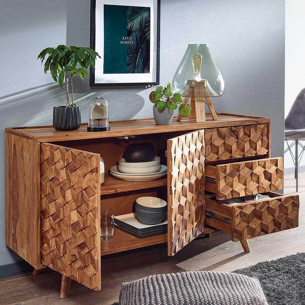 Esszimmer Sideboard aus Sheesham Massivholz Türen und Schubladen