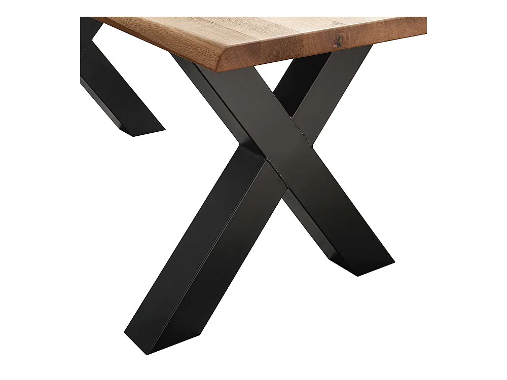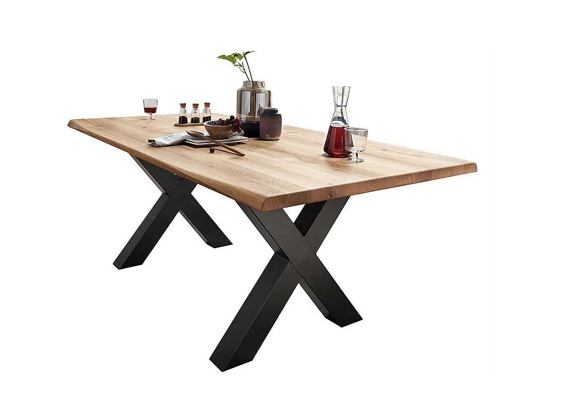 Esszimmer Tisch aus Wildeiche Massivholz und Stahl X-Fußgestell
