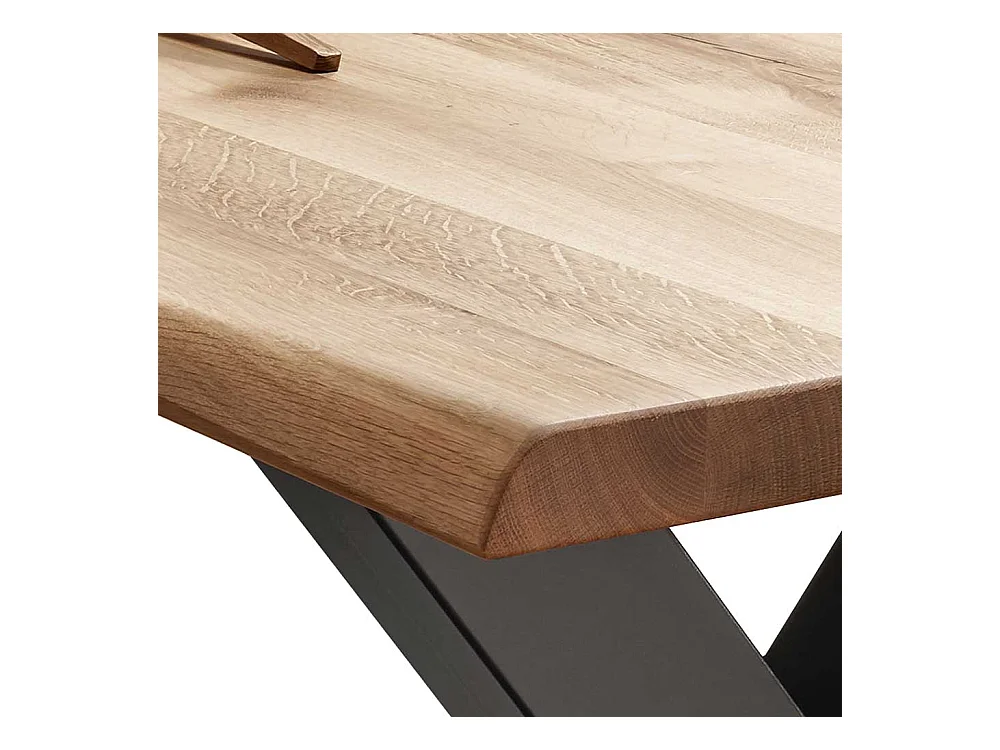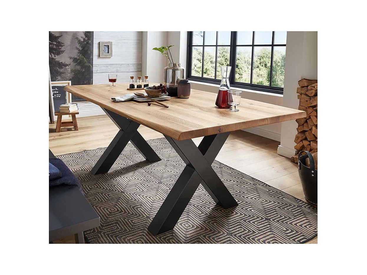 Esszimmer Tisch aus Wildeiche Massivholz und Stahl X-Fußgestell