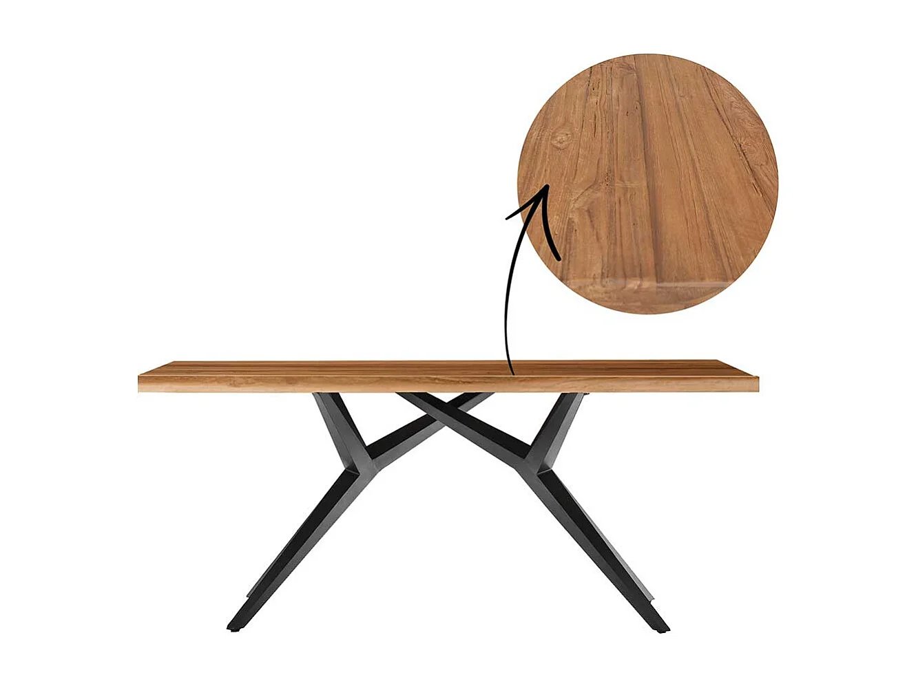 Esszimmer Tisch in Teakfarben und Schwarz Recyclingholz und Metall