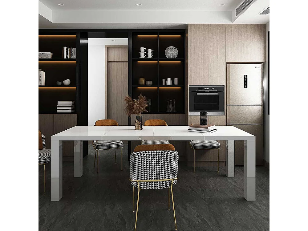 Esszimmer Tisch in Weiß Hochglanz Mittelauszug