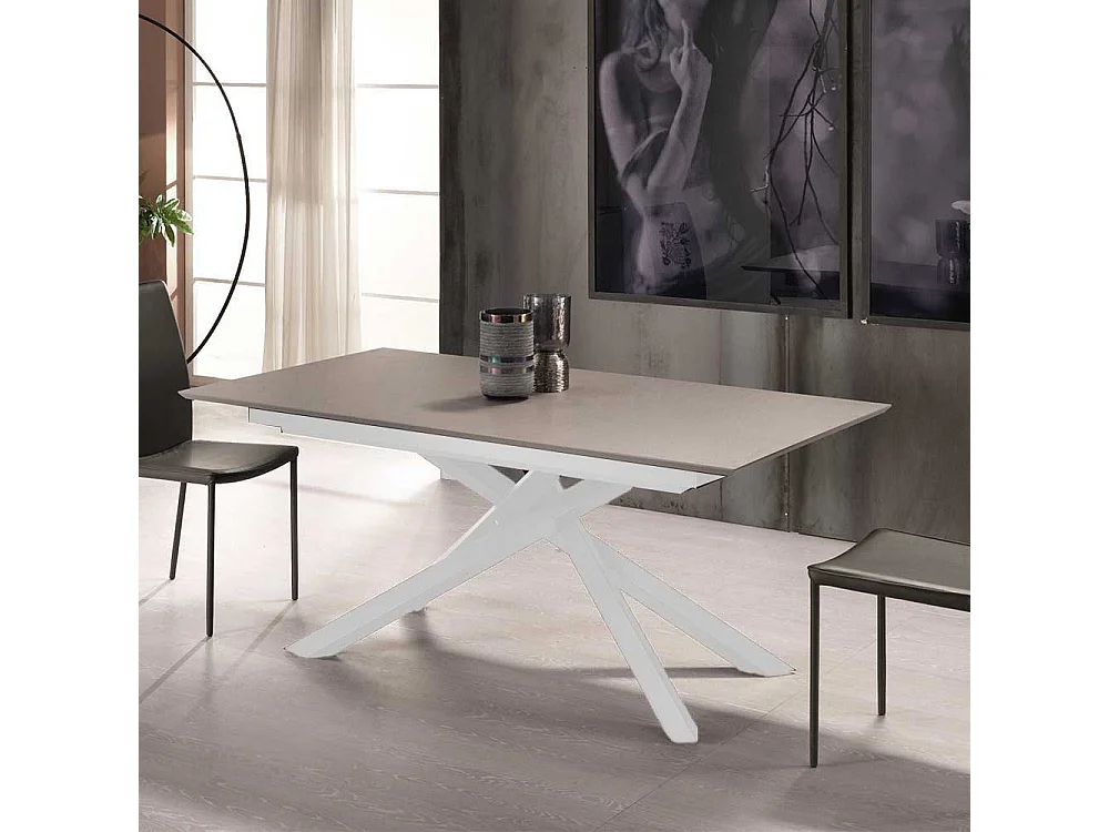 Esszimmer Tisch in Weiß und Hellgrau Kopfauszug