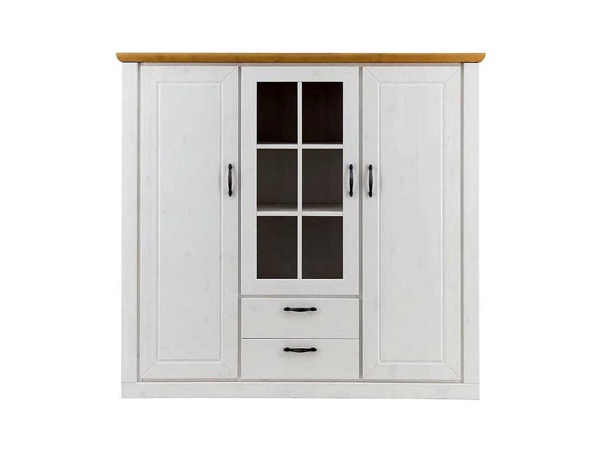 Esszimmer Vitrinenschrank in Weiß und Kieferfarben Soft Close