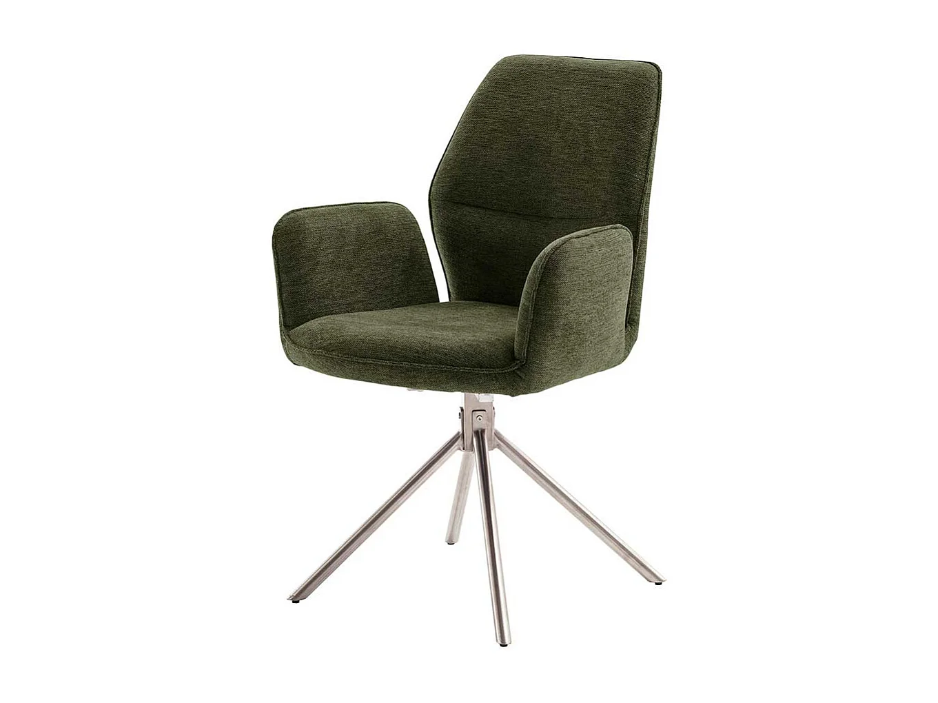 Esszimmerarmlehnstuhl Oliv aus Chenillegewebe Edelstahl (2er Set)