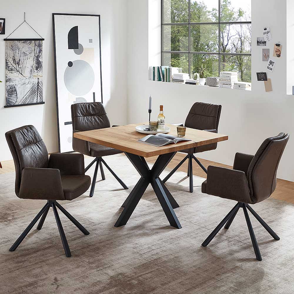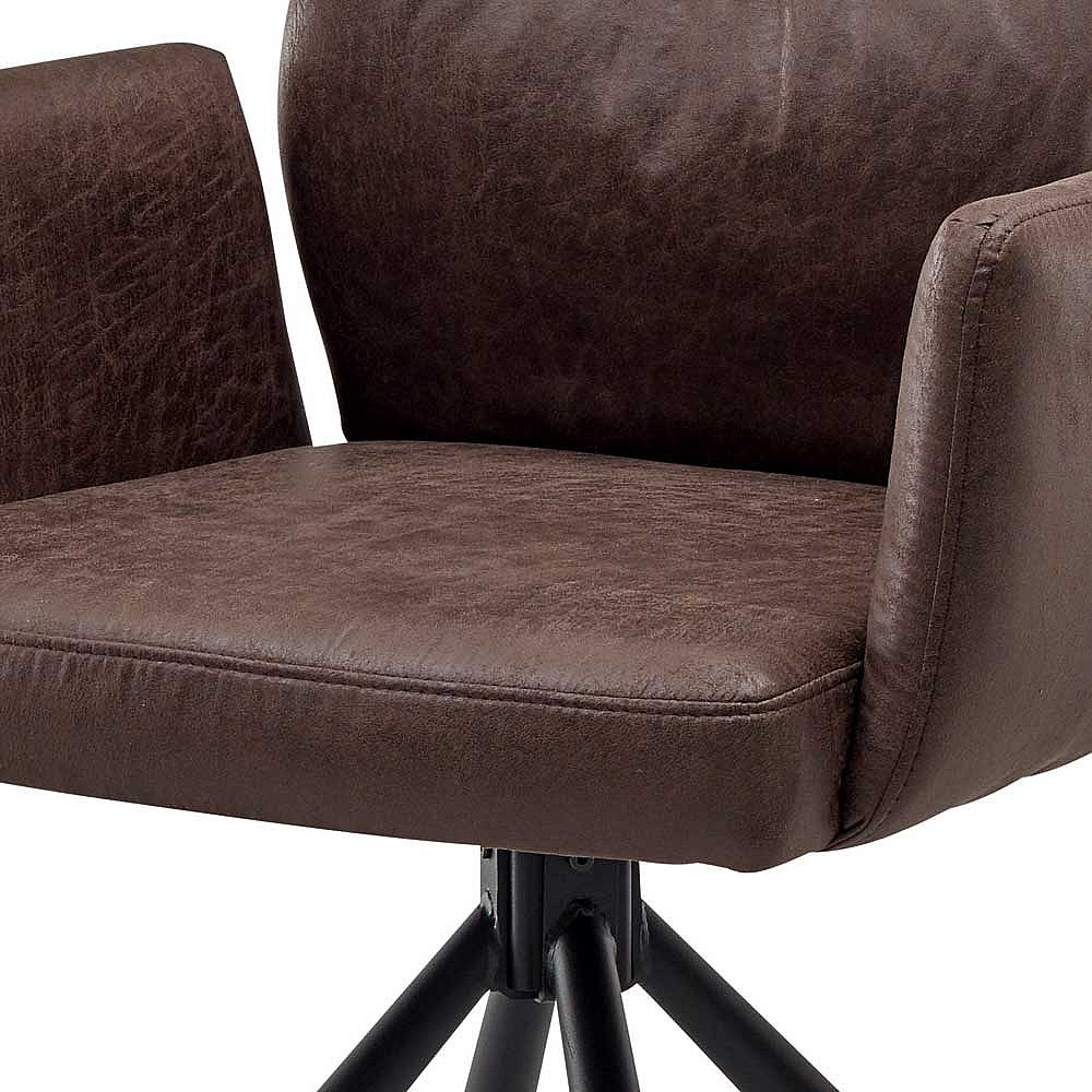 Esszimmerarmlehnstuhl Set in Braun und Schwarz Gestell aus Metall (2er Set)