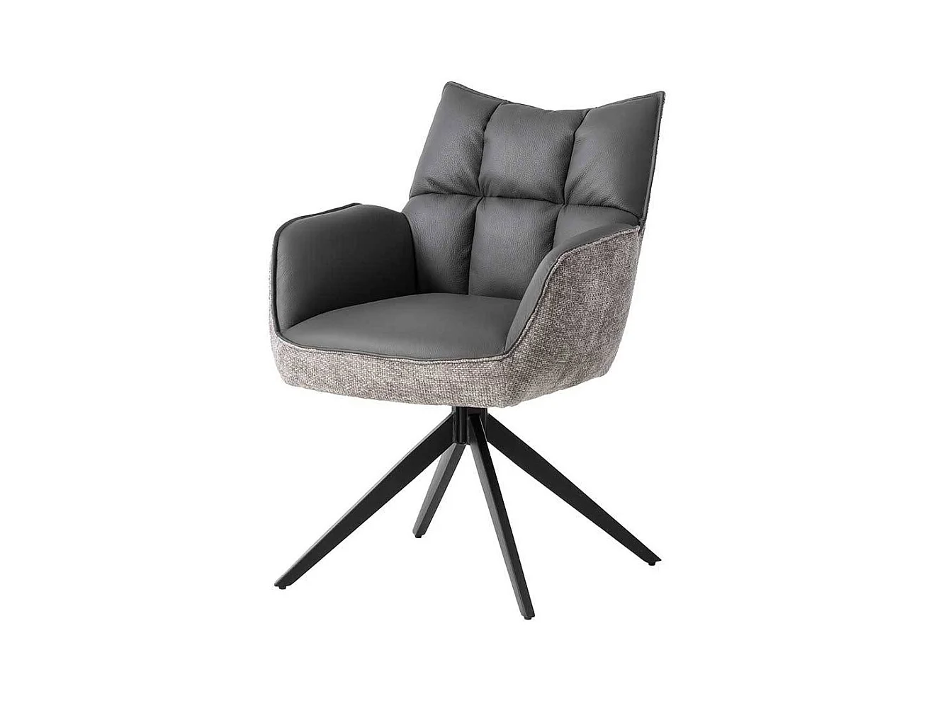 Esszimmerarmlehnstuhl Stuhl aus Echtleder und Boucle Stoff (2er Set)