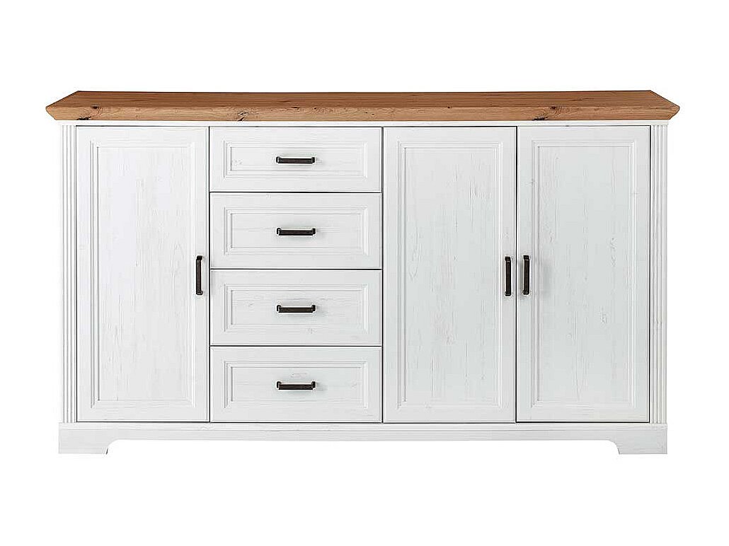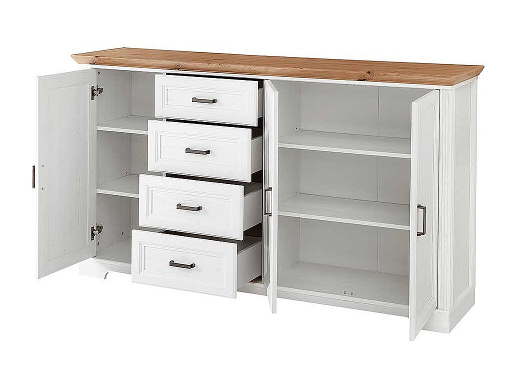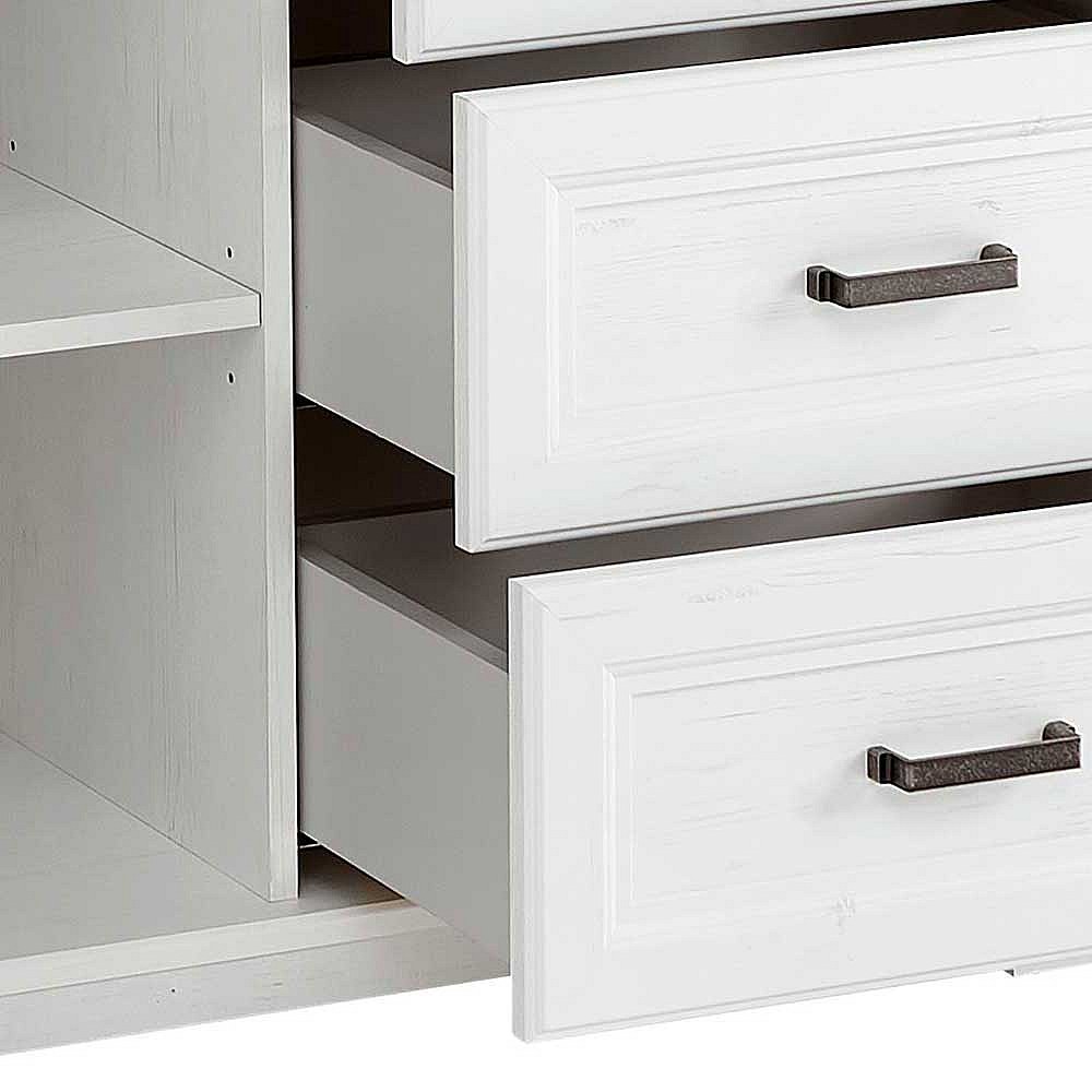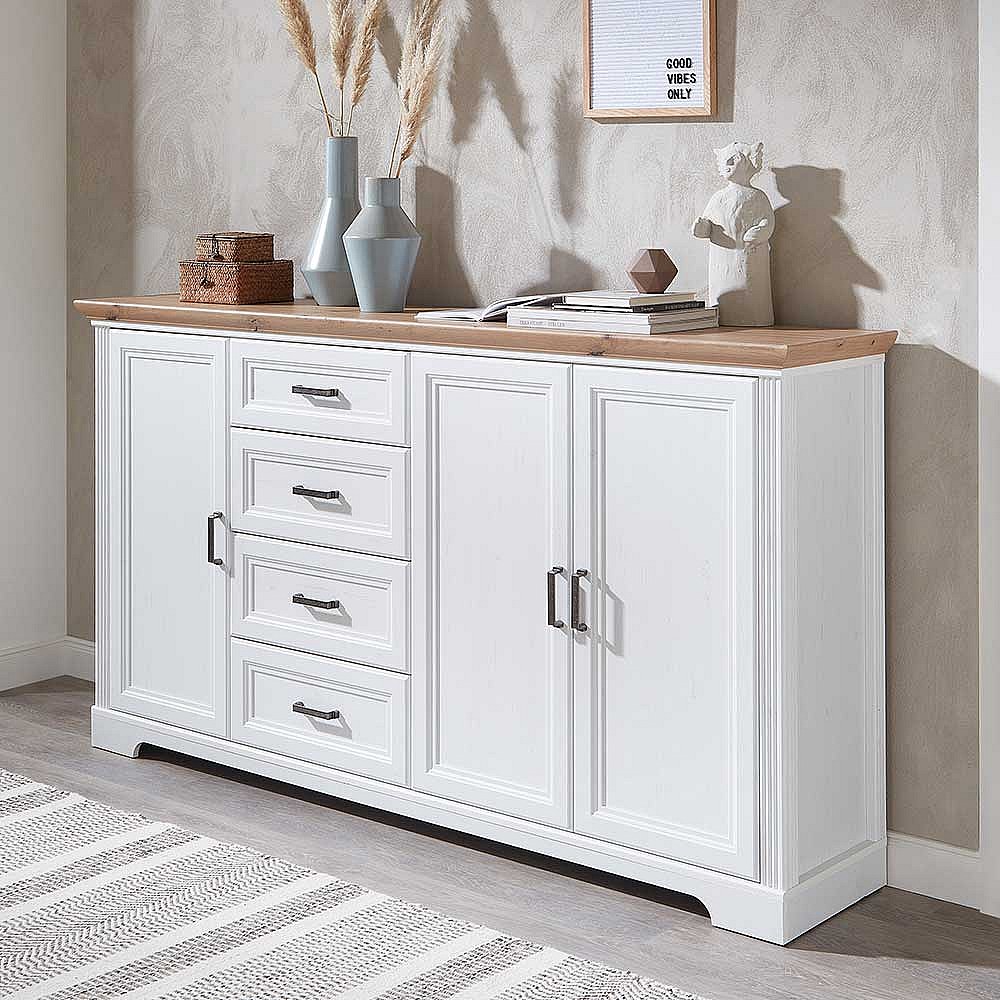 Esszimmersideboard in Weiß und Eichefarben Landhausstil