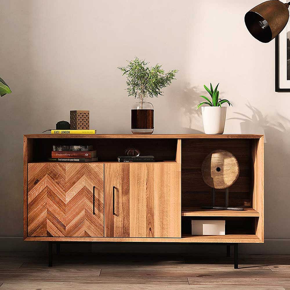 Esszimmersideboard massiv in Wildeichefarben Vierfu�gestell aus Metall