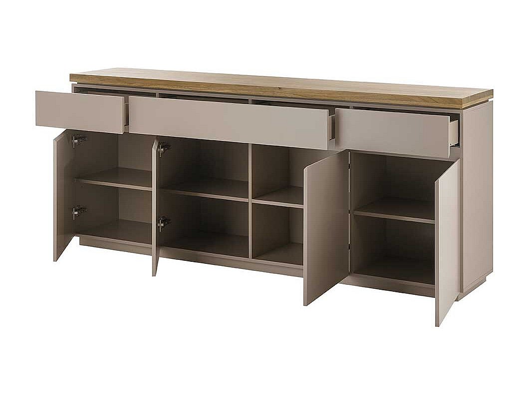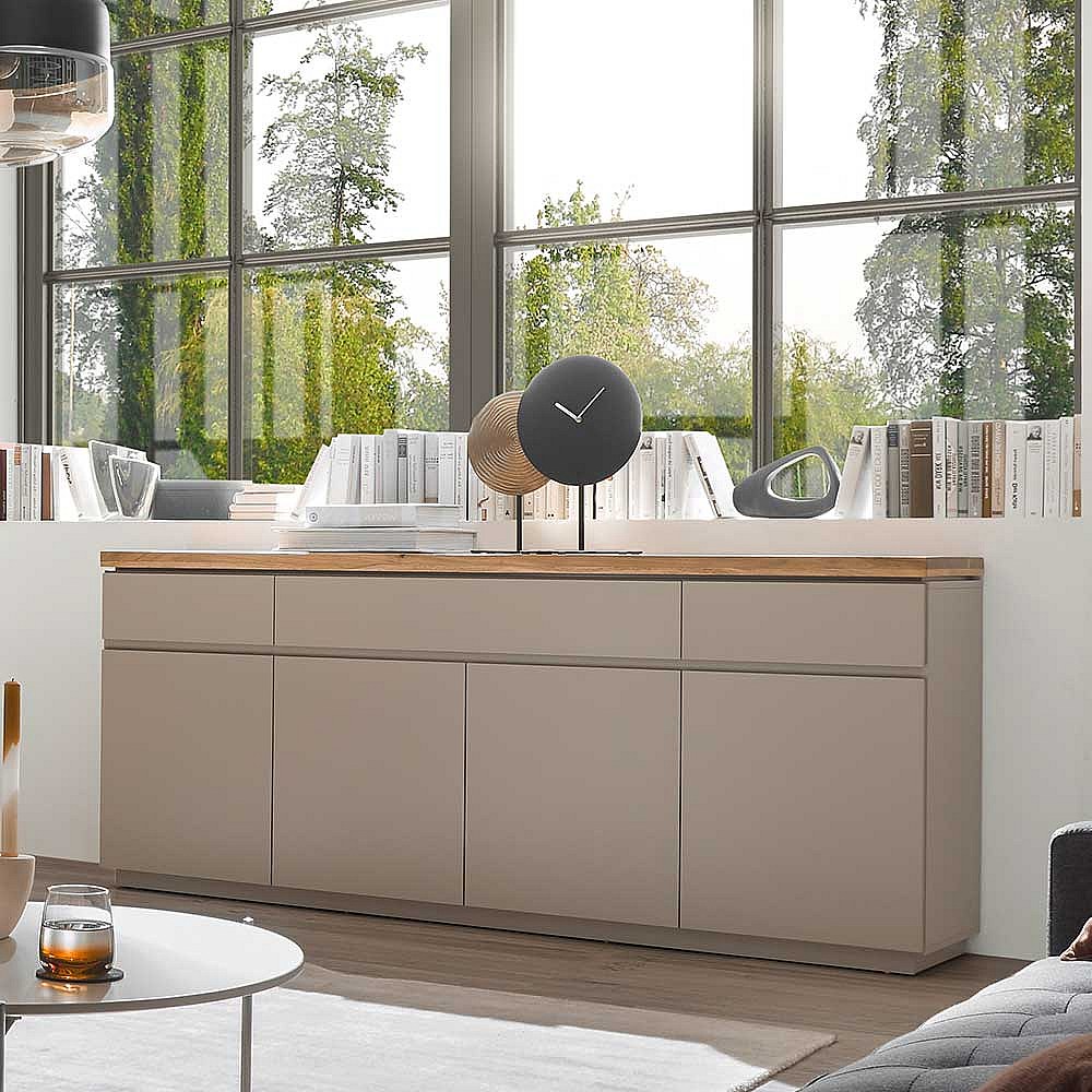 Esszimmersideboard modern Taupe 200 cm breit drei Schubladen