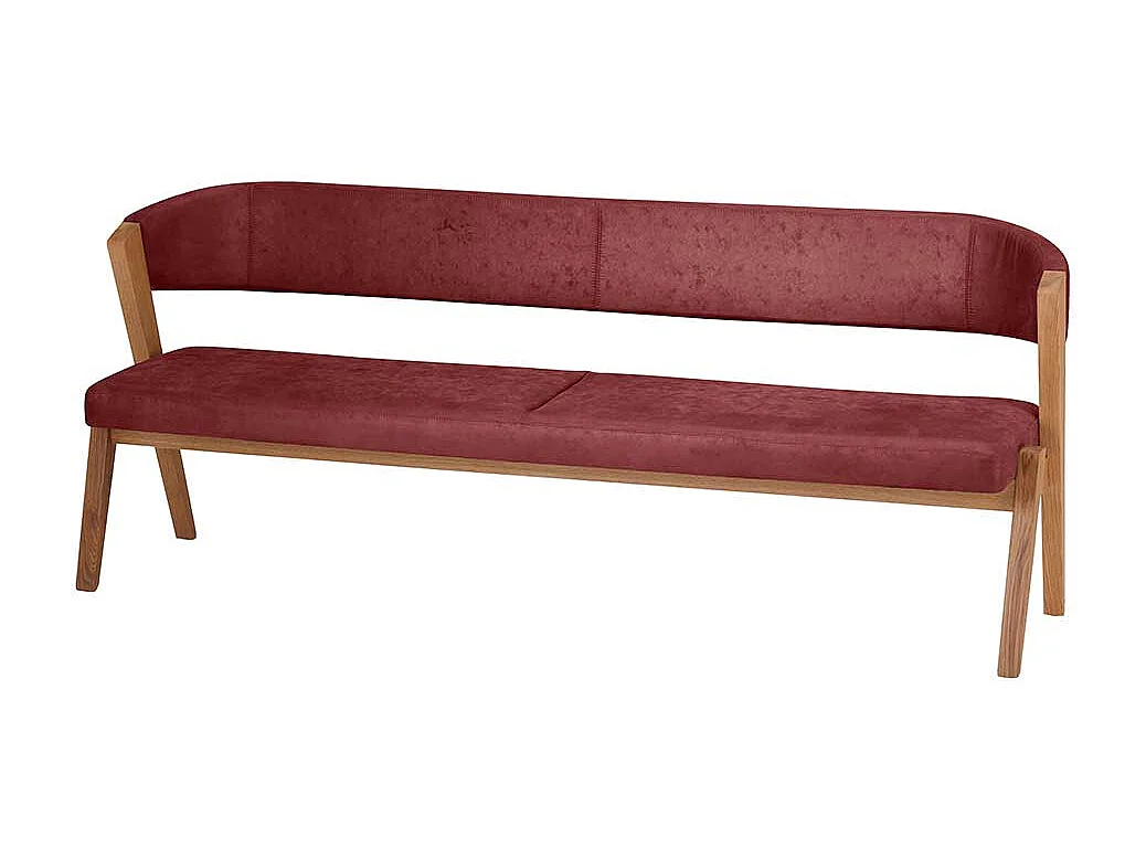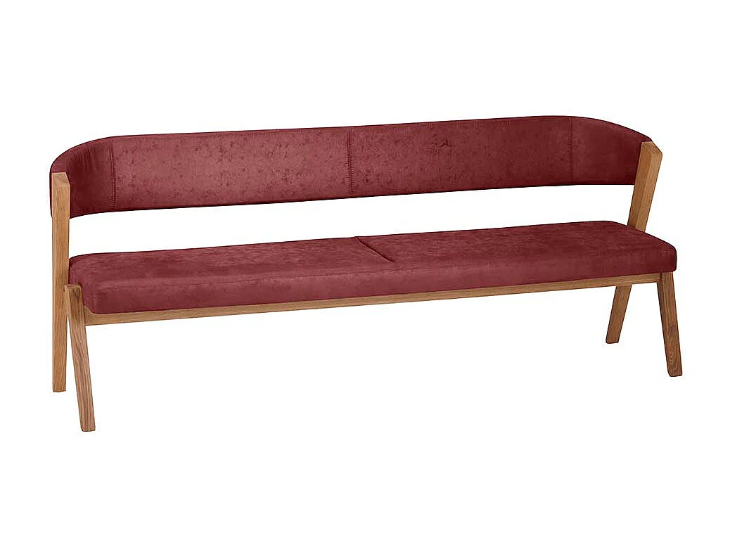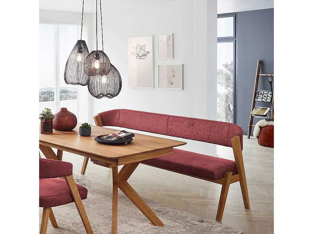 Esszimmersitzbank in Rot und Wildeiche Massivholz Vierfußgestell