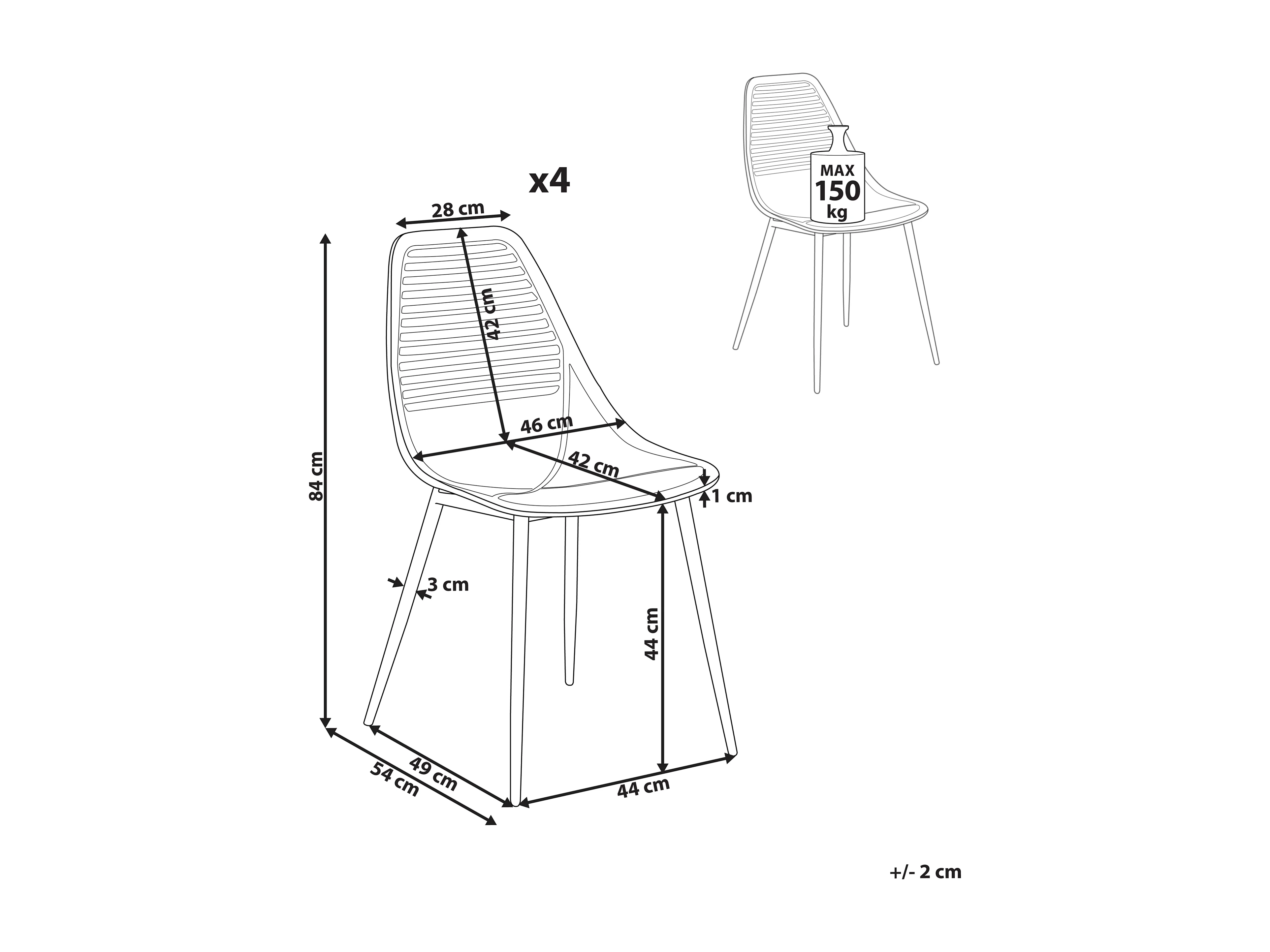 Esszimmerstuhl 4er Set Kunststoff Eisen Holzoptik beige moderner Stil Montello