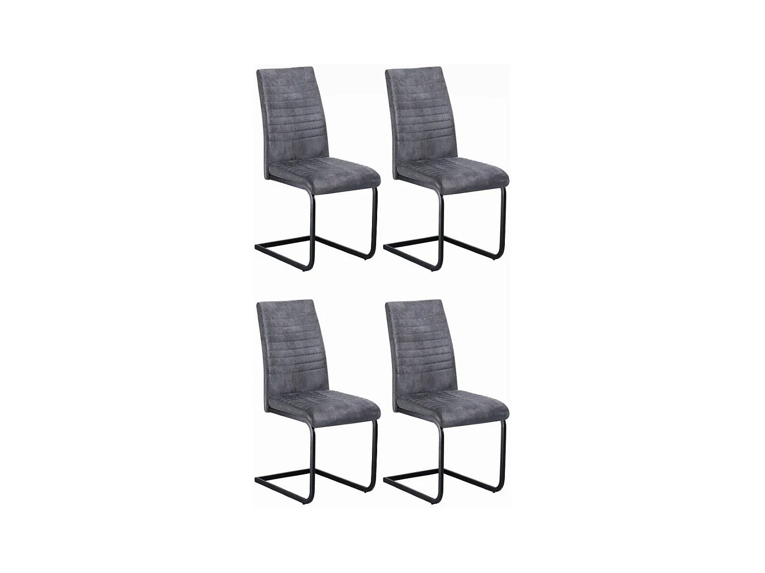 Esszimmerstuhl 4er-Set - Stoff & Schwarzes Metall - Grau - TIBER