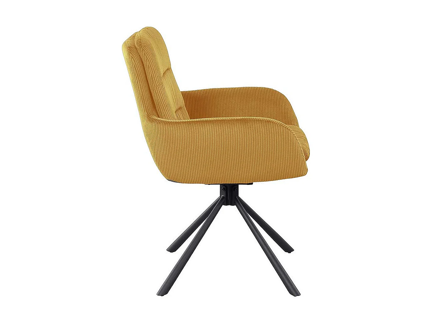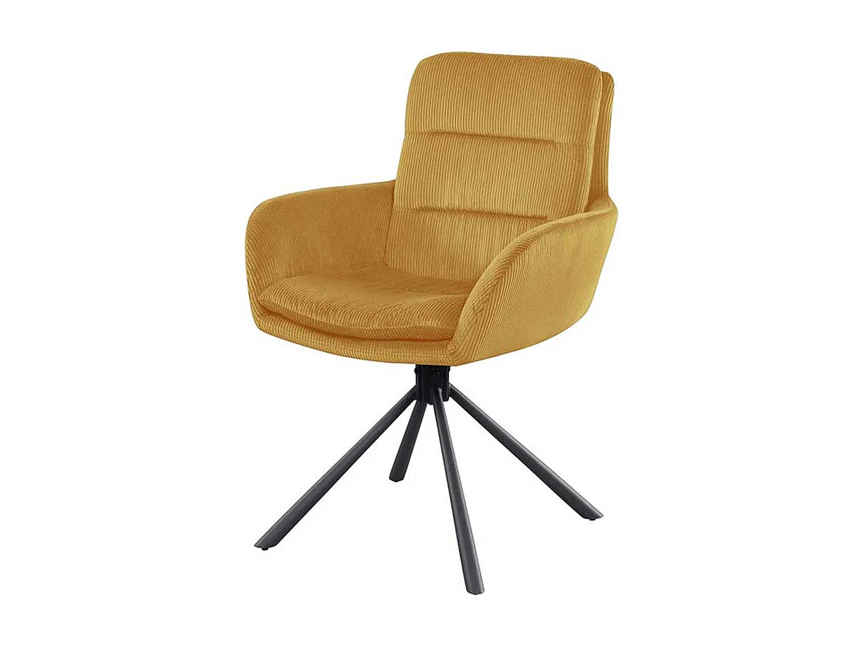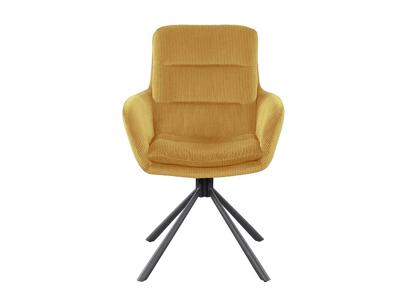 Esszimmerstuhl Armlehnen Cord in Goldgelb und Schwarz Gestell aus Metall