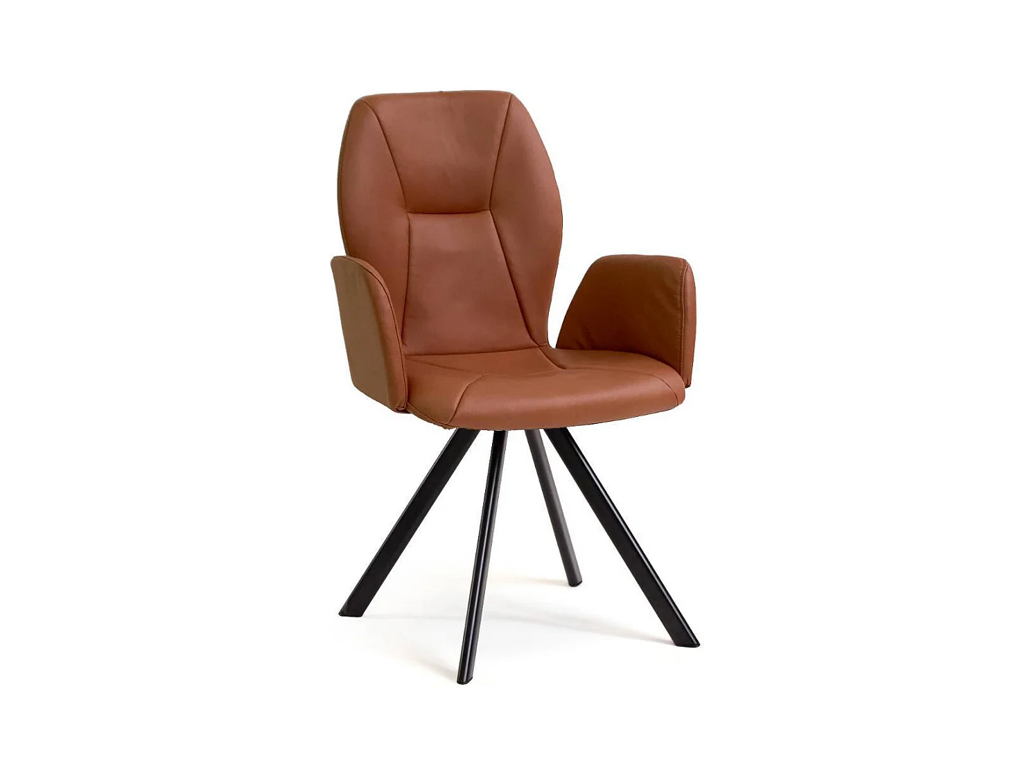 Esszimmerstuhl Armlehnstuhl in Cognac Braun mit Gestell aus Metall