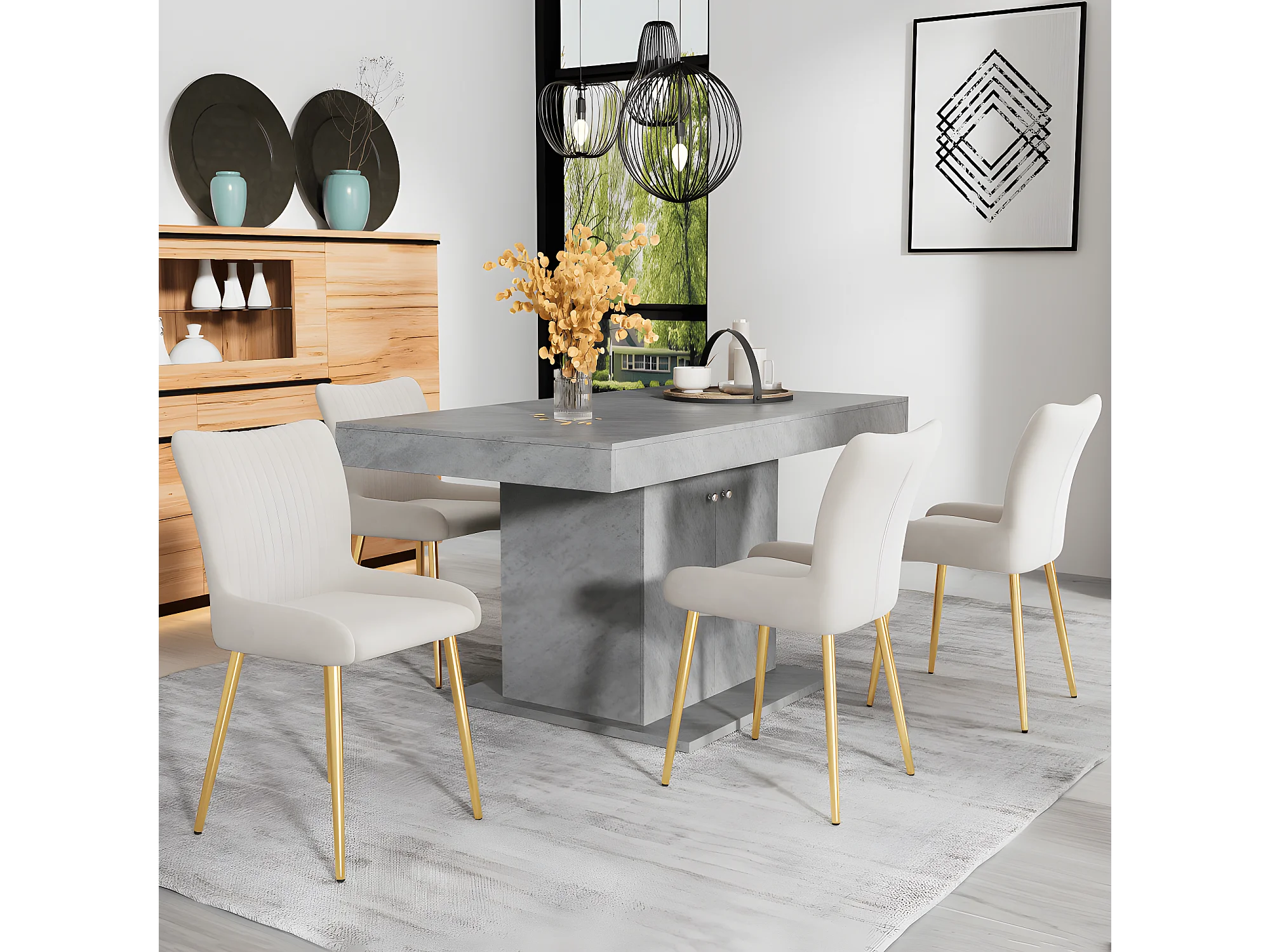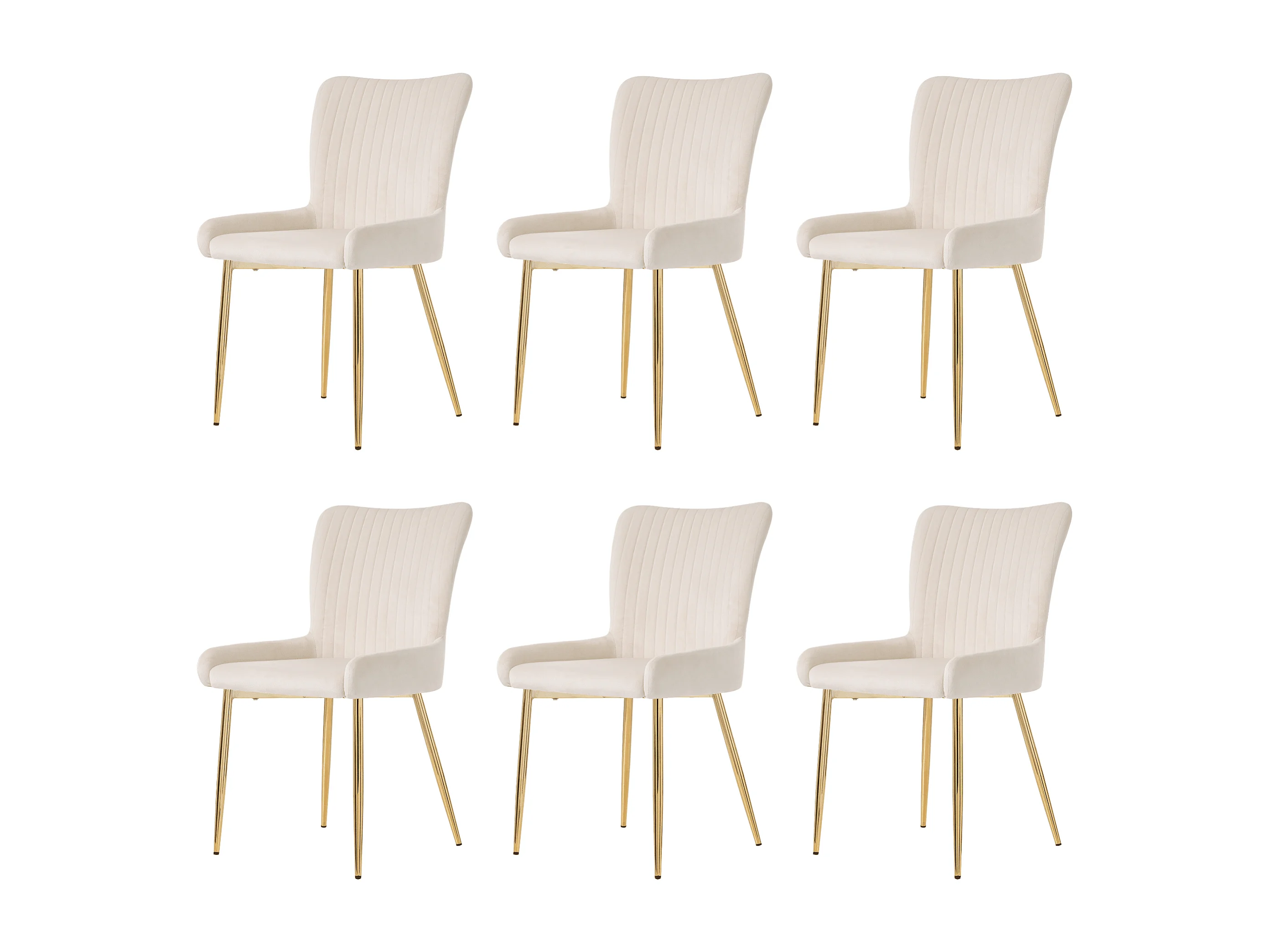 Esszimmerstuhl aus Samt, 6er-Set, Lounge Chair mit vier Beinen aus vergoldetem Metall, beige