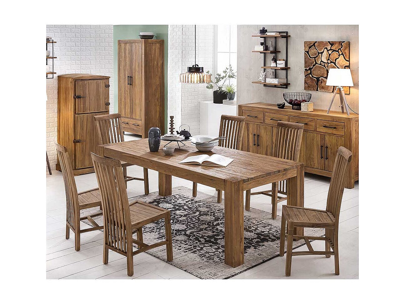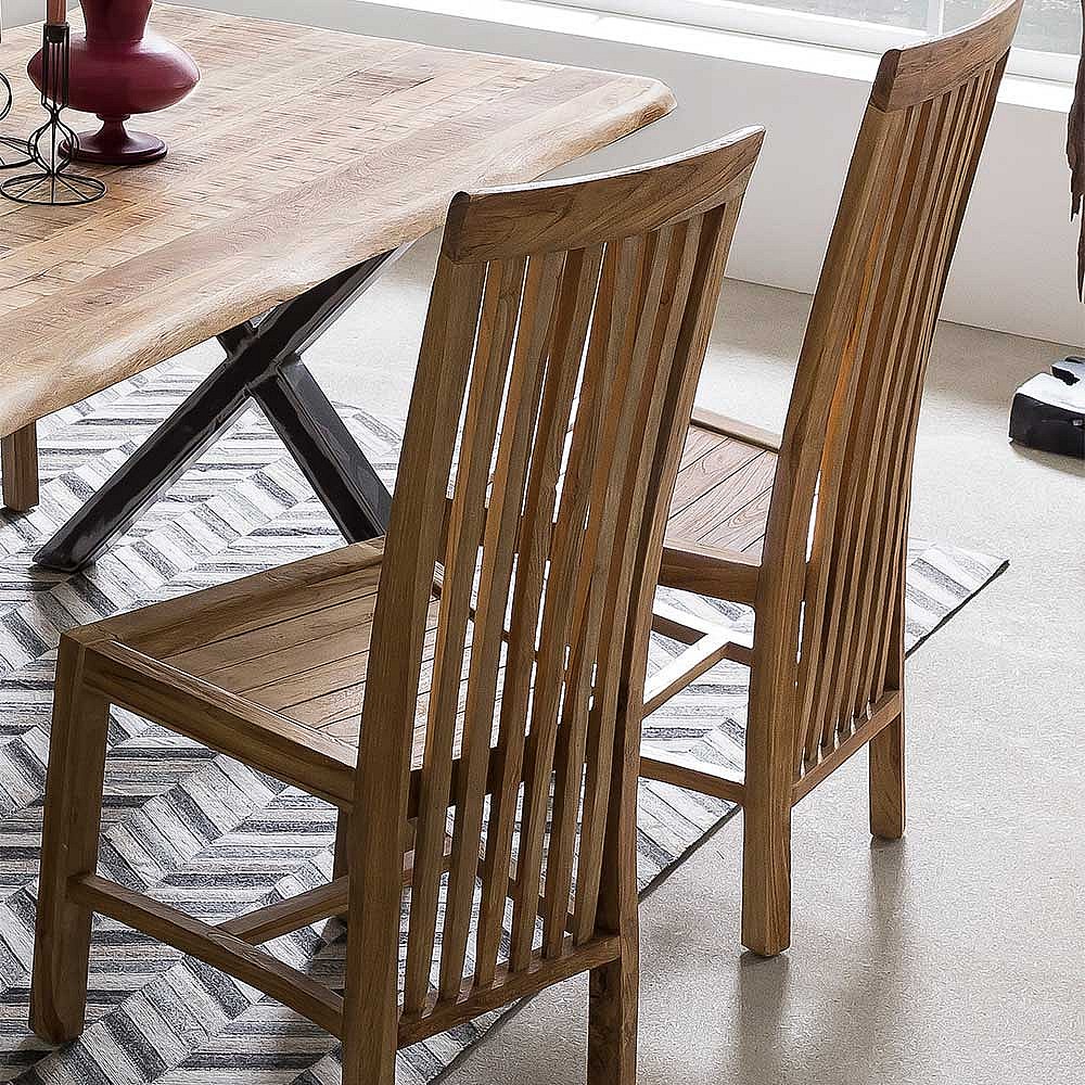 Esszimmerstuhl aus Teak Massivholz mit hoher Lehne