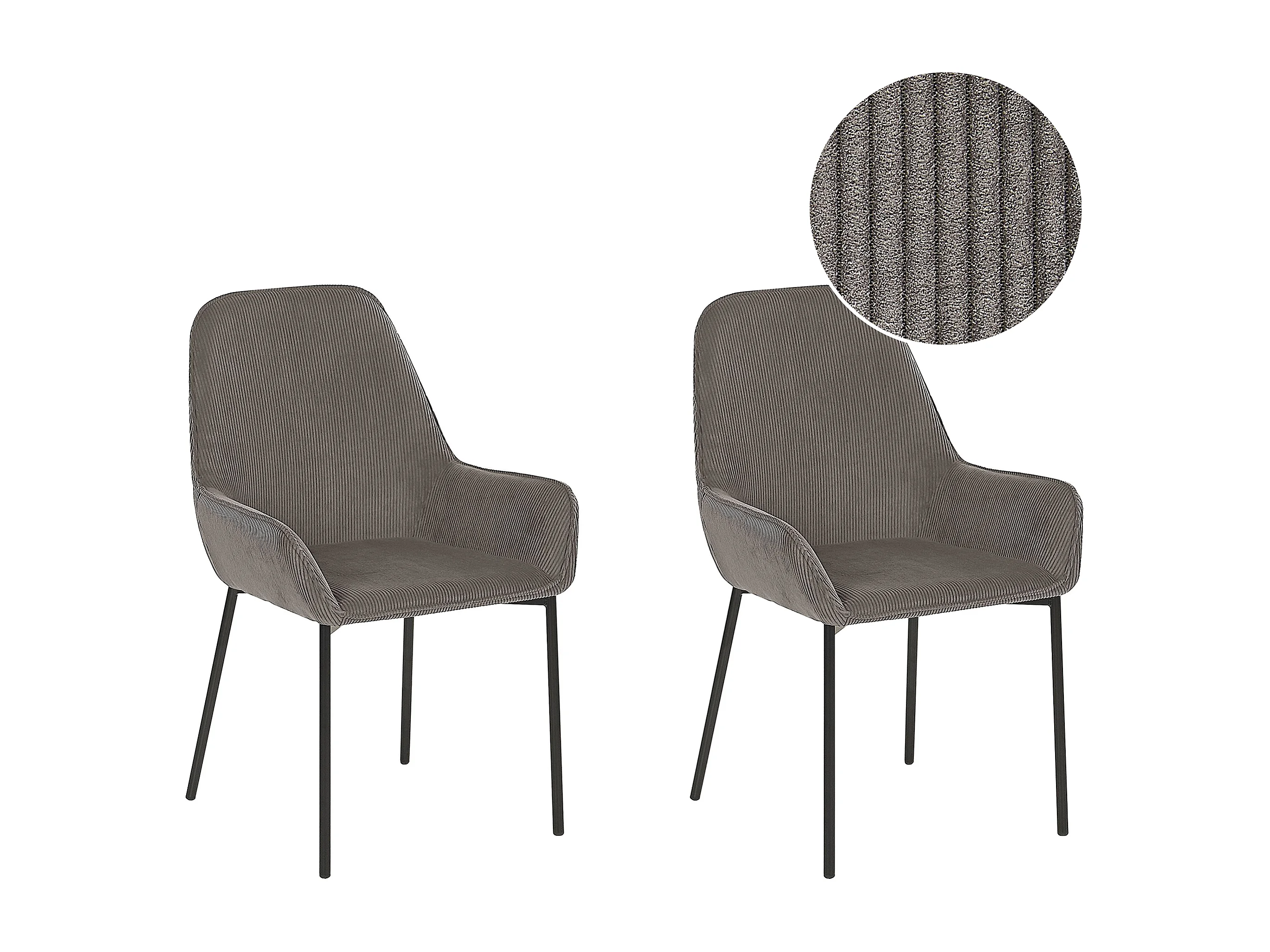 Polsterstuhl mit Metallbeinen im 2er Set grau aus Cord Loverna