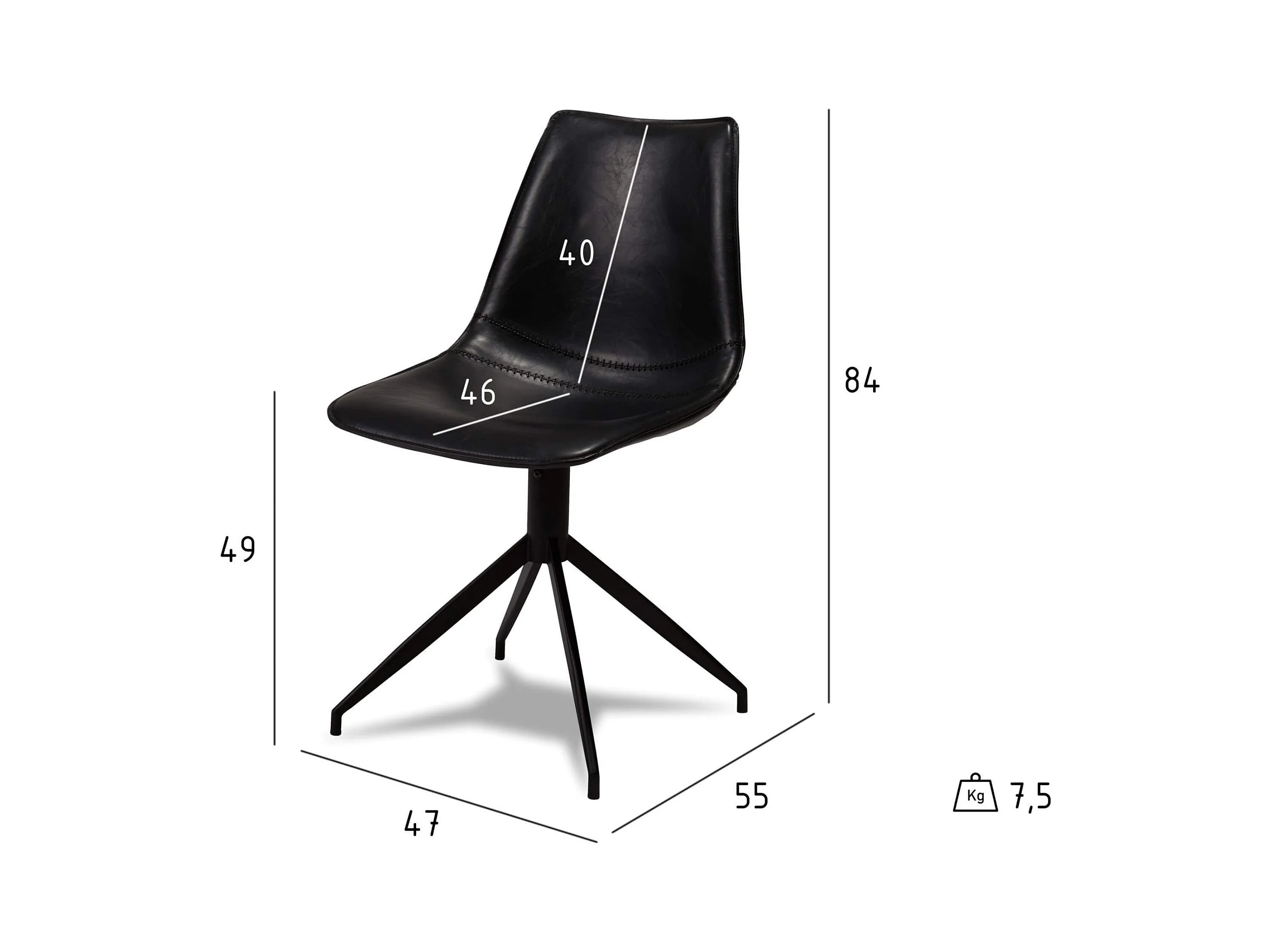 Esszimmerstuhl Drehbar 2er Set Isabel - Kunstleder & Metall - Schwarz
