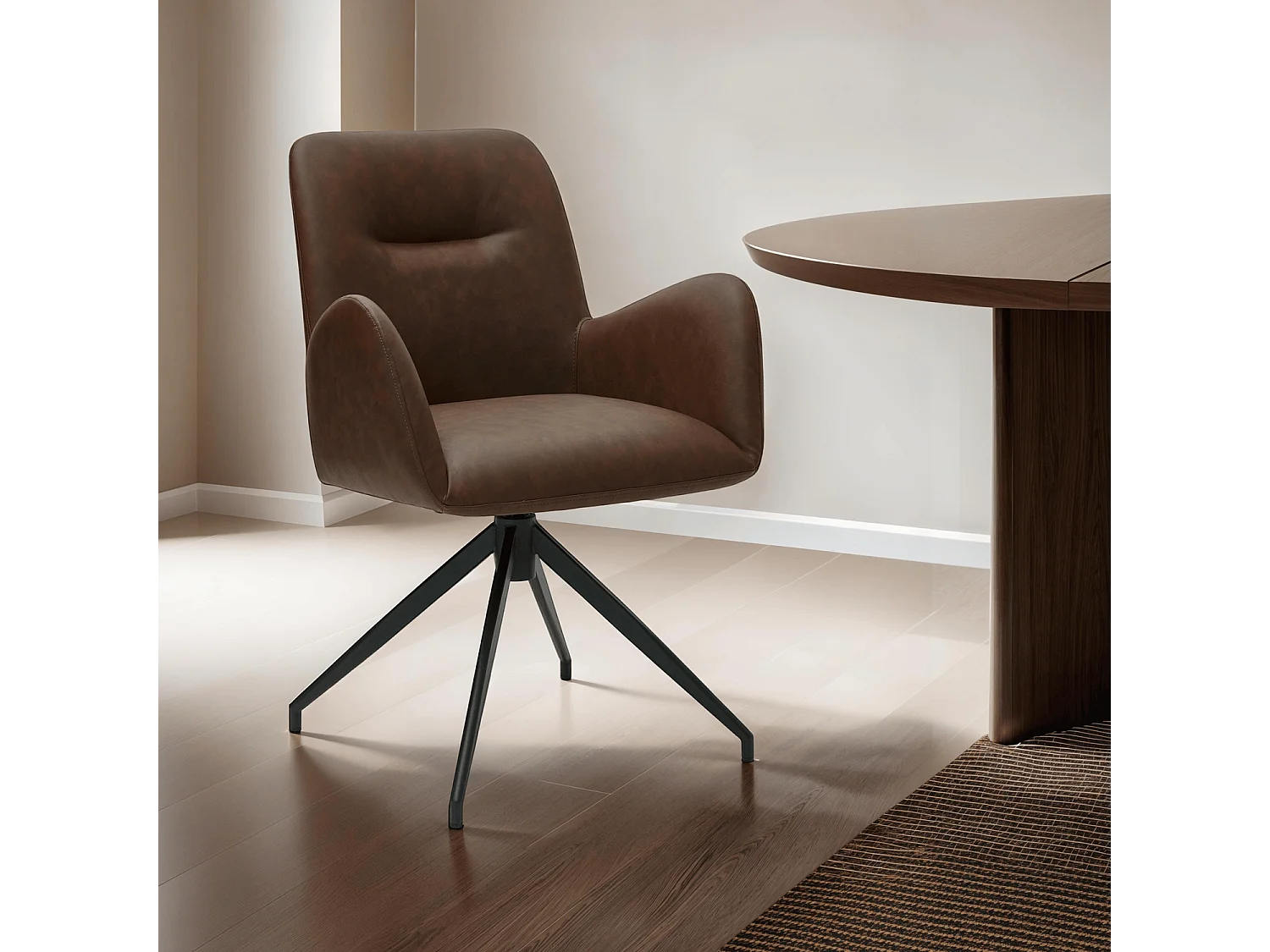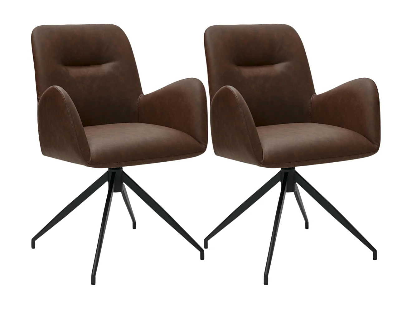 Esszimmerstuhl Drehbar 2er Set Jennifer - Kunstleder & Metall - Braun