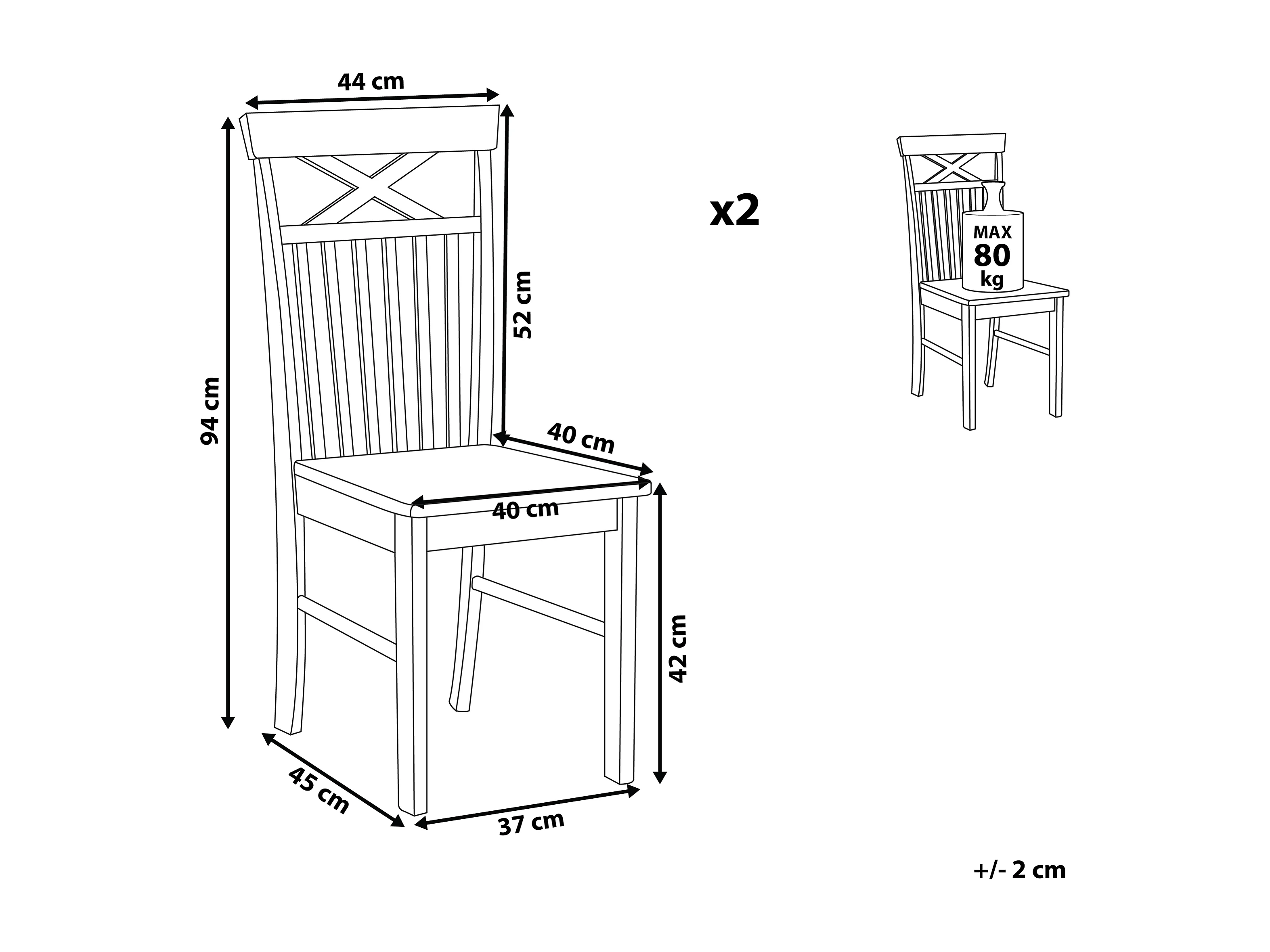 Esszimmerstuhl 2er Set HOUSTON Holz Schwarz