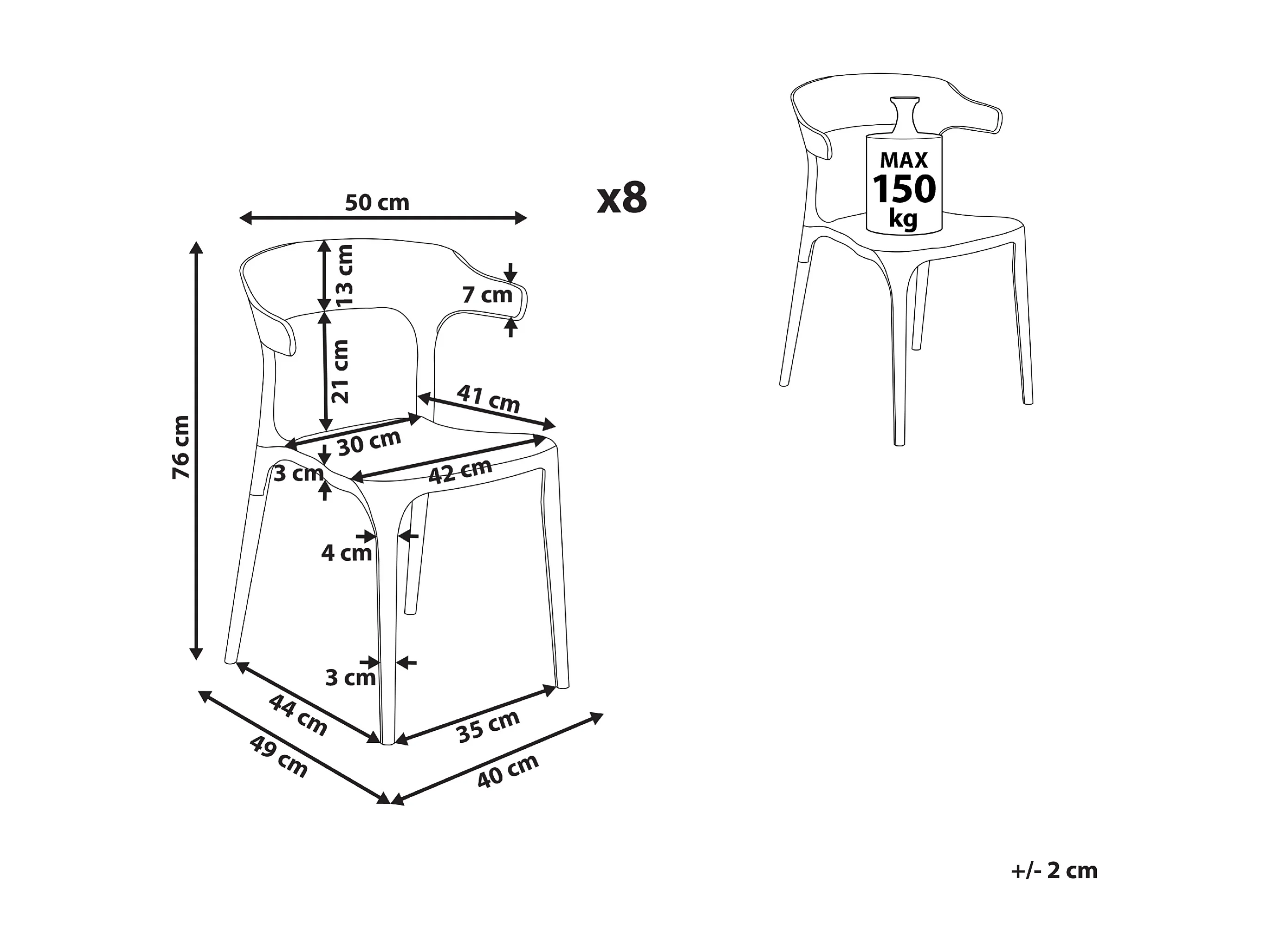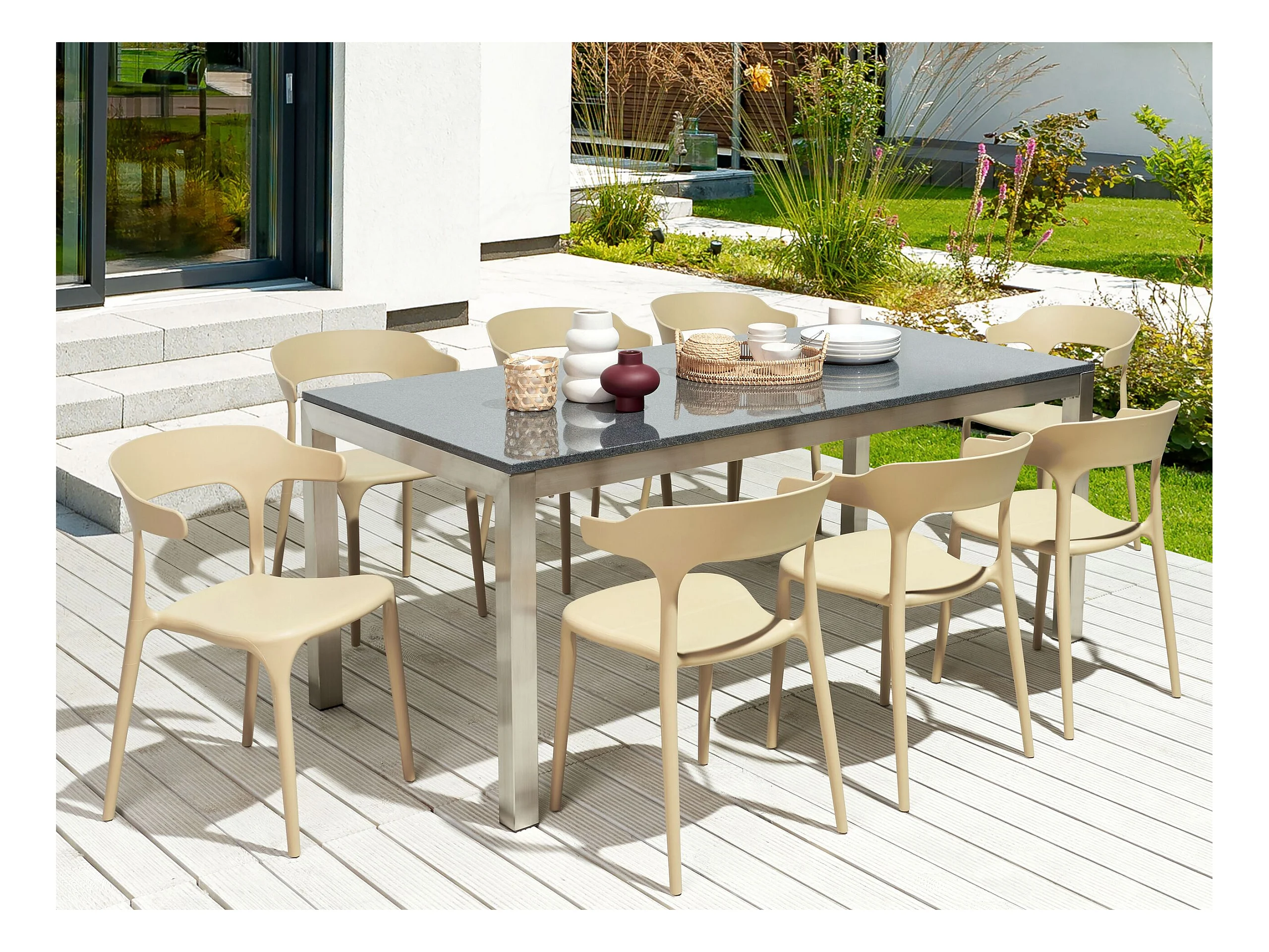 Indoor & Outdoor Stuhl 8er Set Kunststoff beige stapelbar Skandi Modern Gubbio