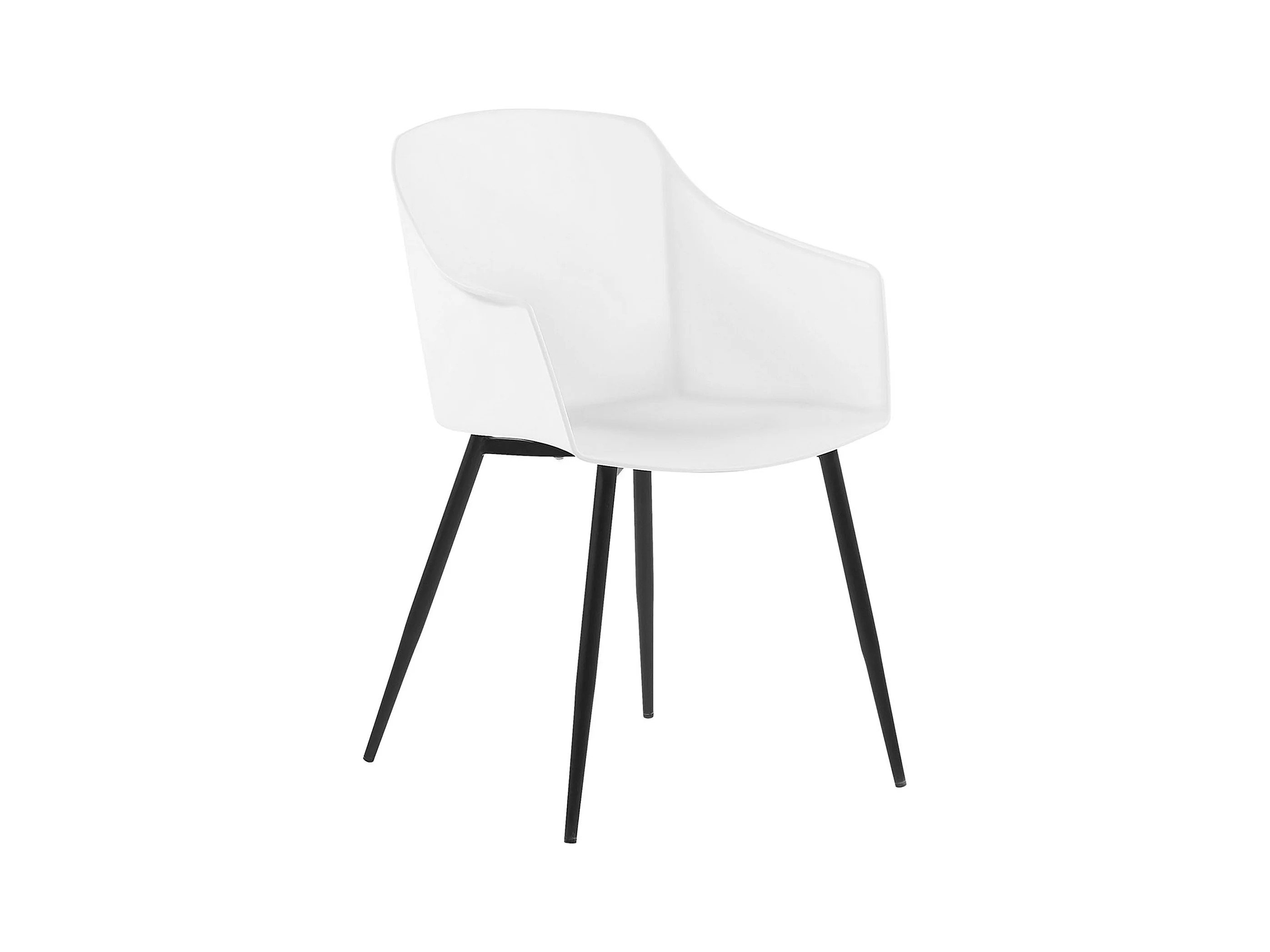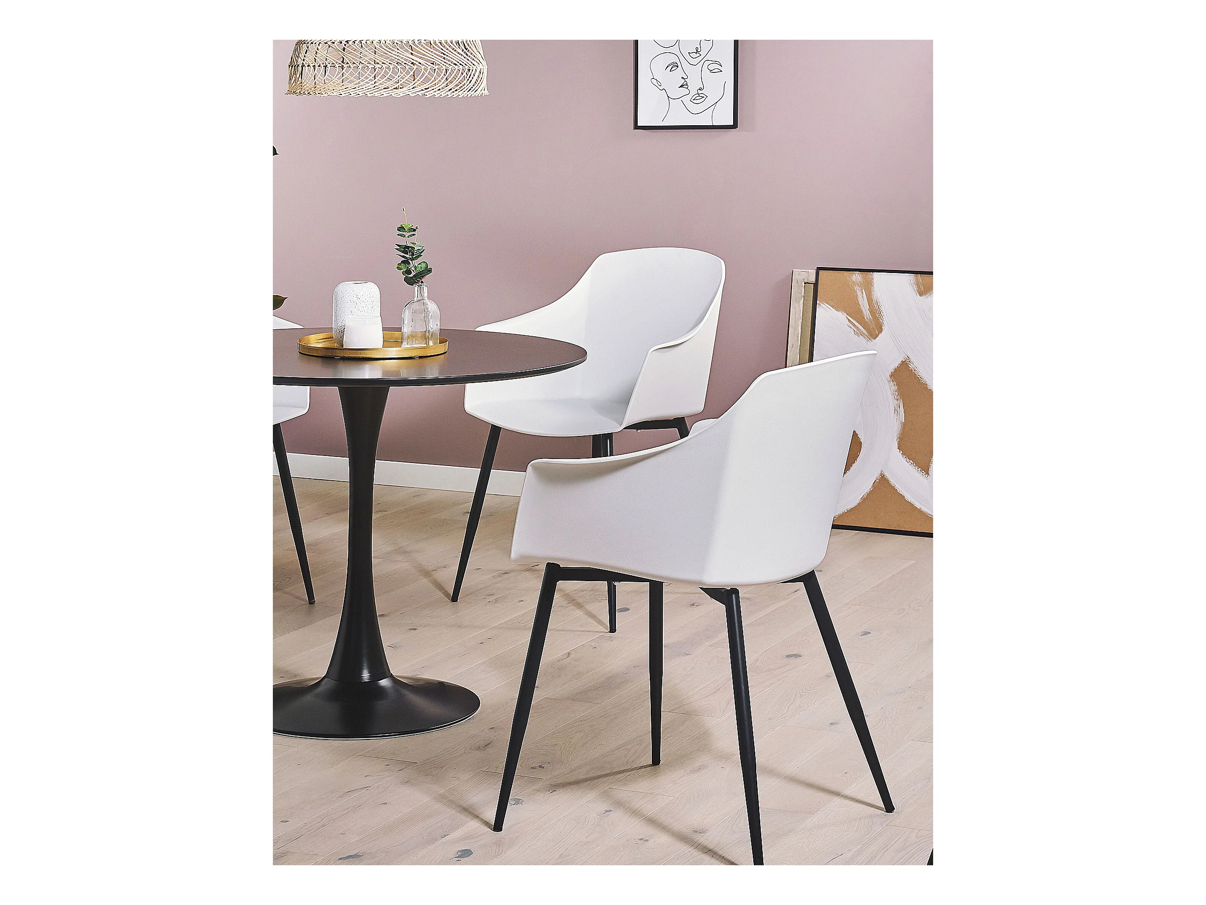 Esszimmerstuhl mit Armlehnen in Weiß und schwarzen Metallbeinen 2er Set Fonda